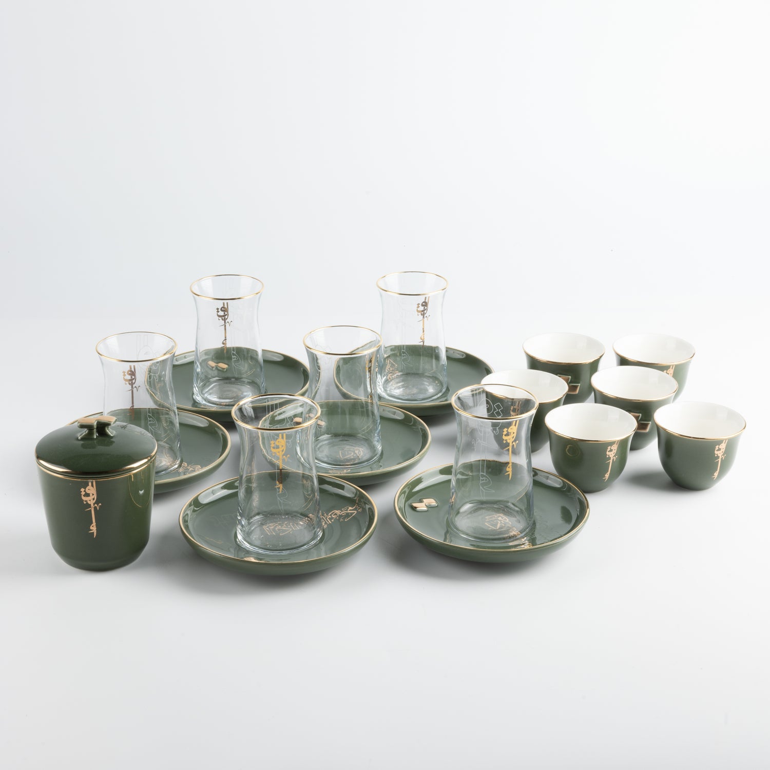 Liqa'a - Tea Set (19-Pc) - Olive Green & Gold