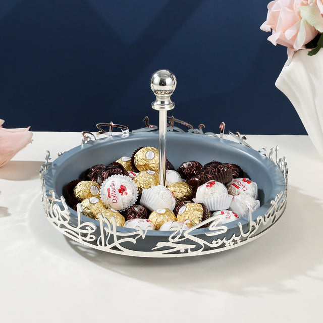 Jiwar - Medium Serving Stand - Haze Blue & Silver