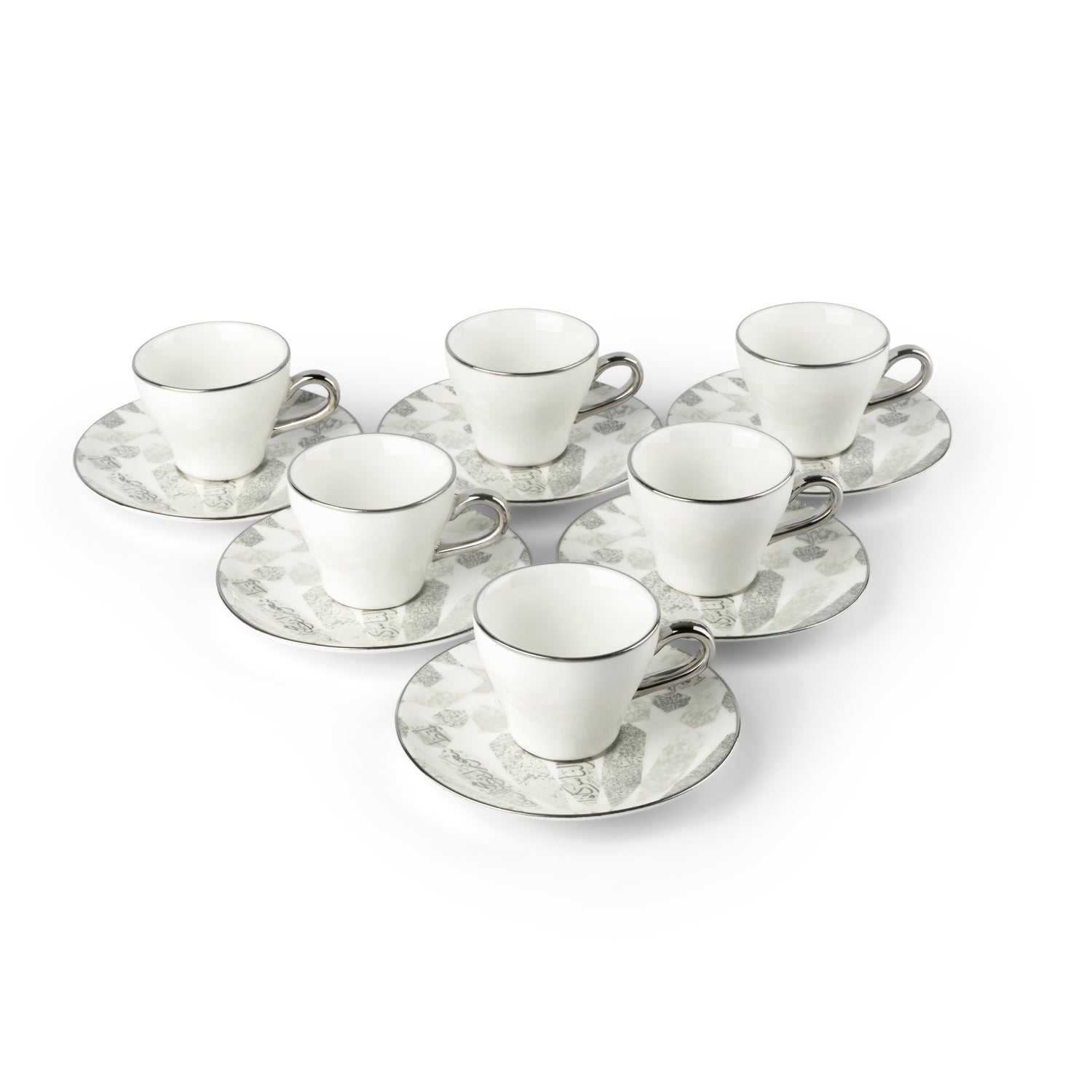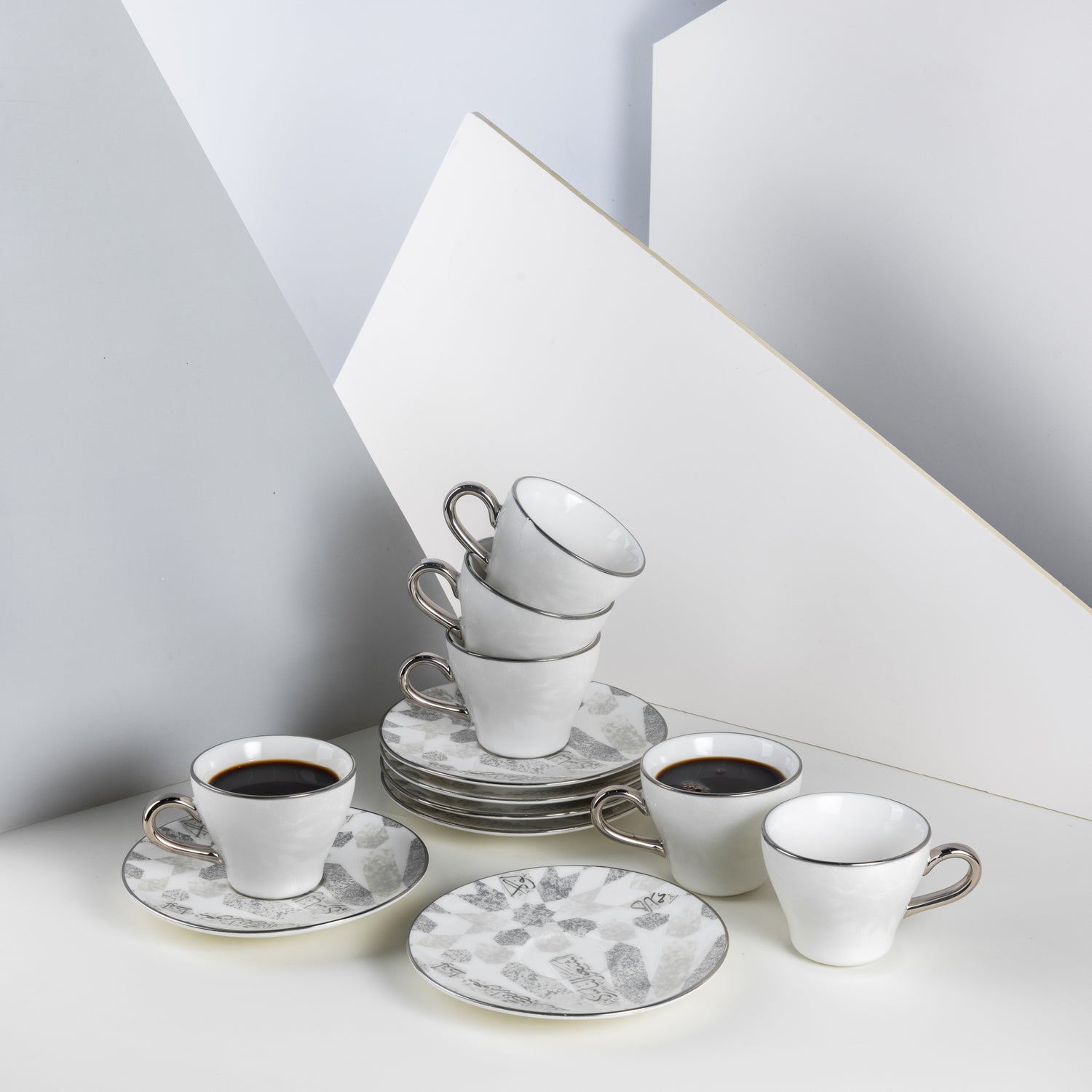 Amal - Espresso /Turkish Coffee Cups, (12-Pc)- Grey & Silver