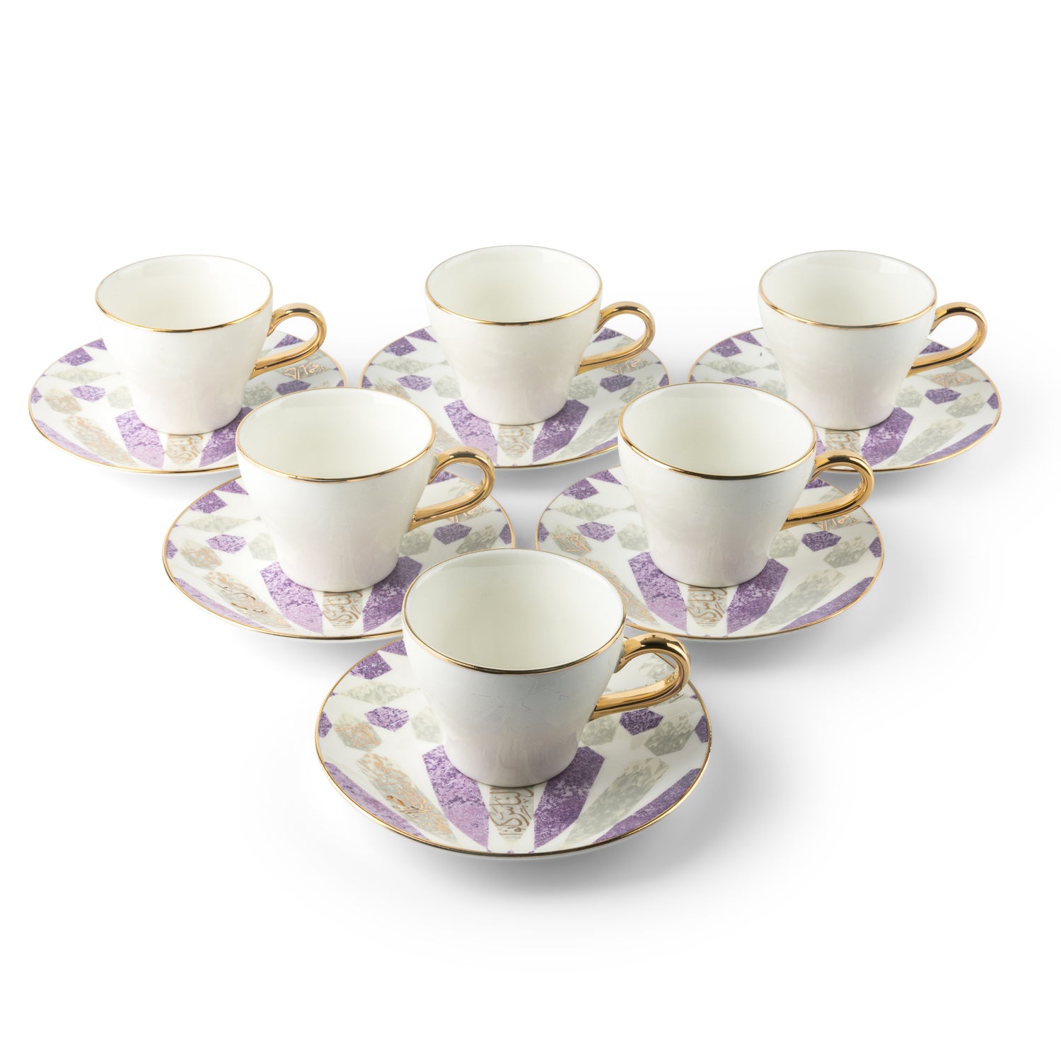 Amal - Cappuccino Cups, (12-Pc)- Purple & Gold