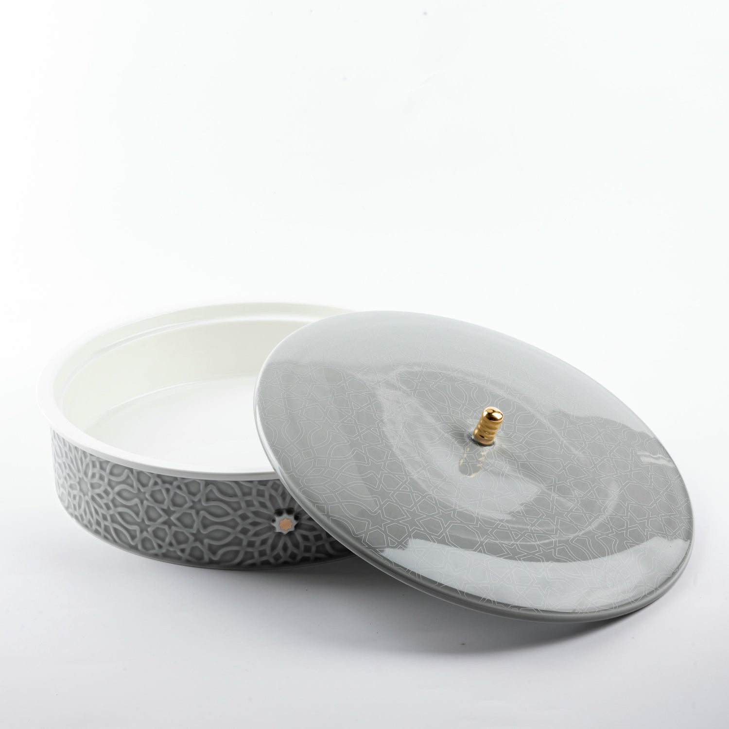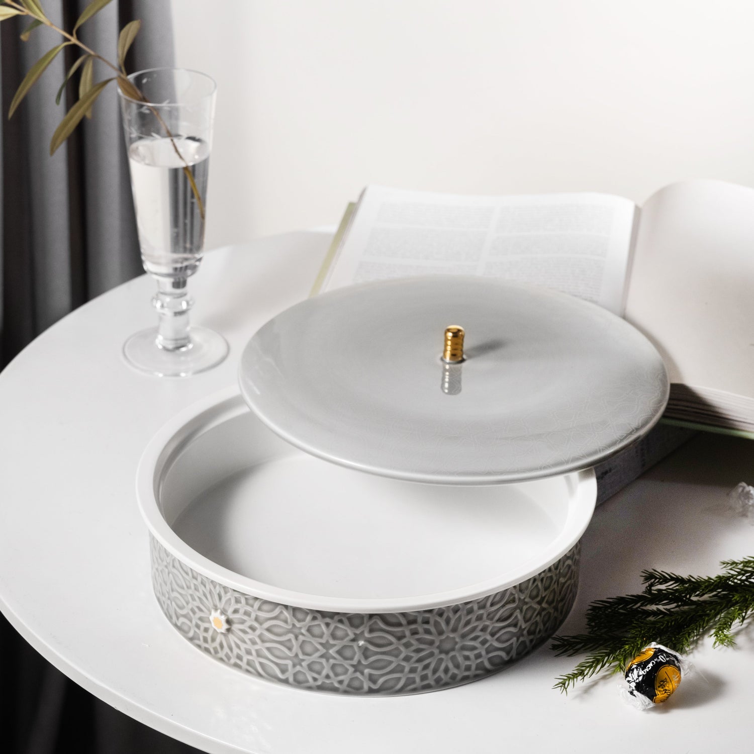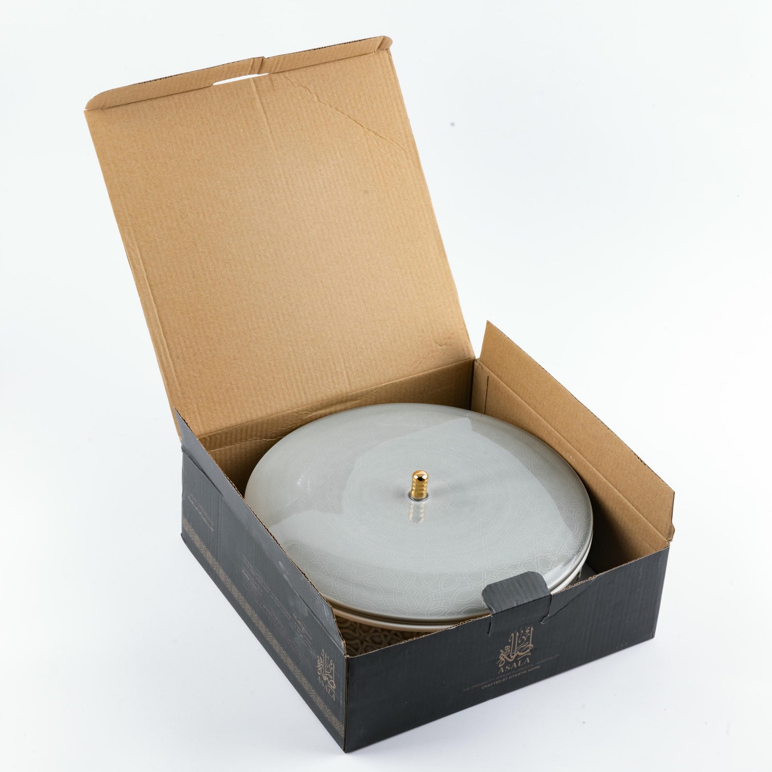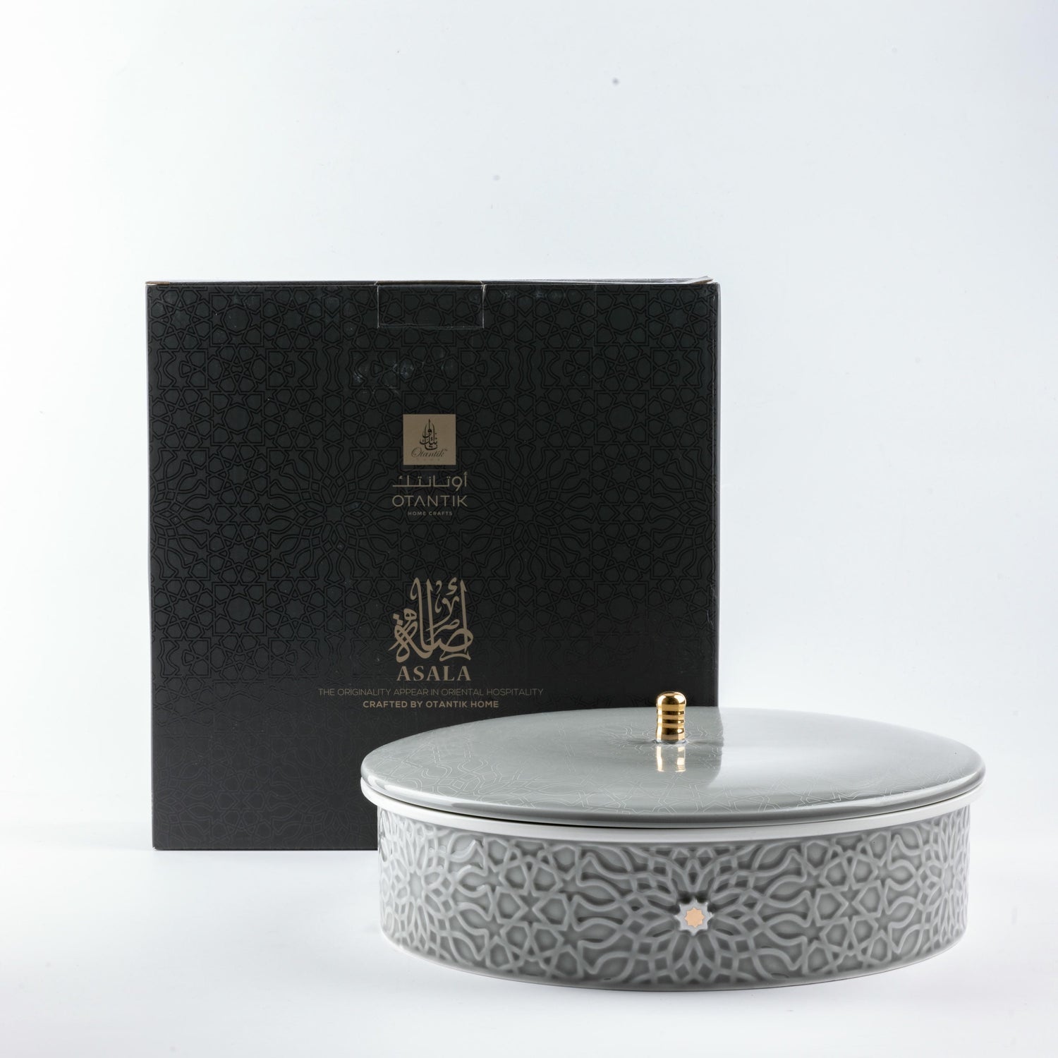 The Asala Large Decorative Canister is a stunning centerpiece that combines timeless tradition with refined sophistication. Crafted from premium porcelain, it serves as the perfect vessel for displaying dates or other treats, enhancing your dining experience with every use. Whether for special occasions or everyday moments, this exquisite piece adds an air of elegance, transforming any setting into one of luxury and grace.
