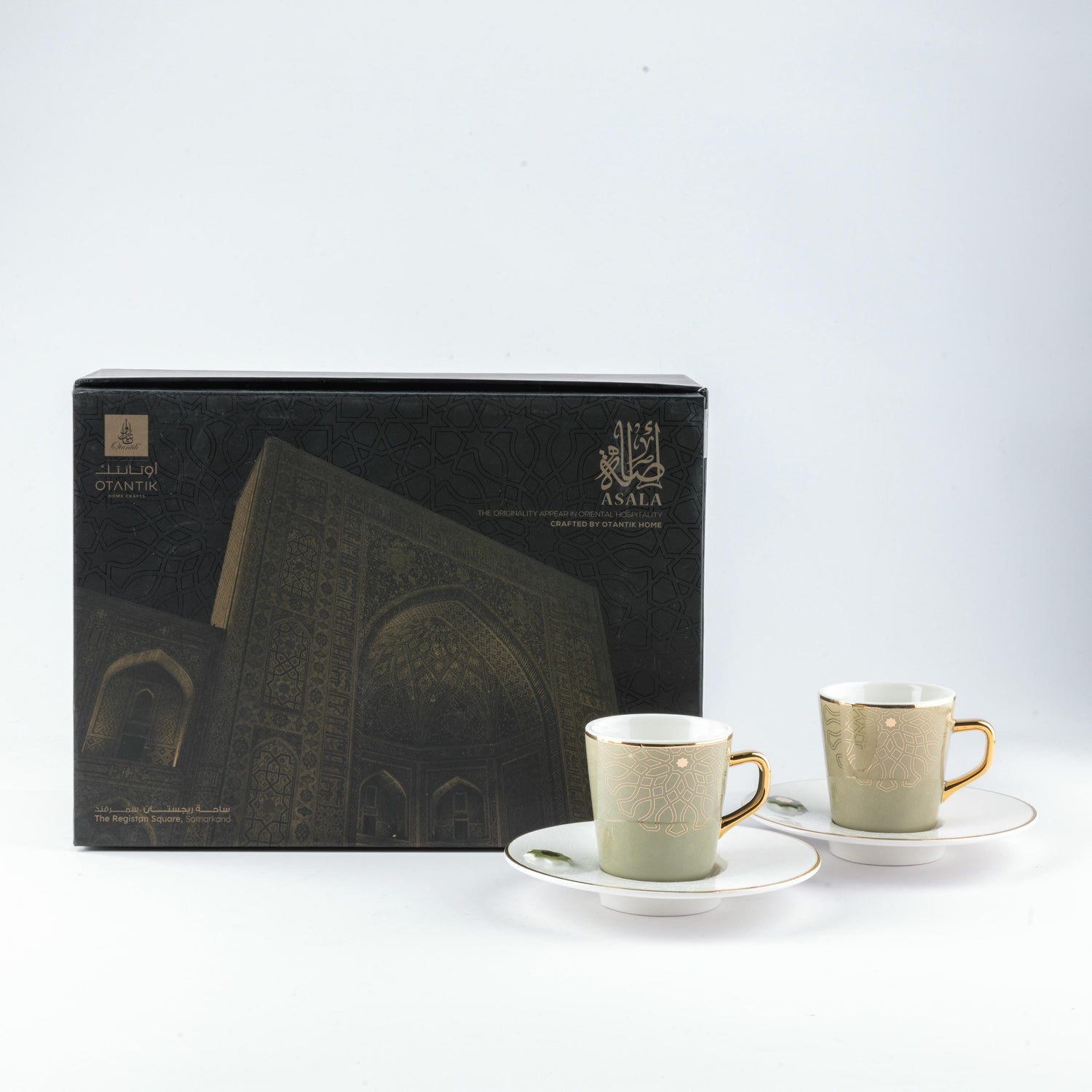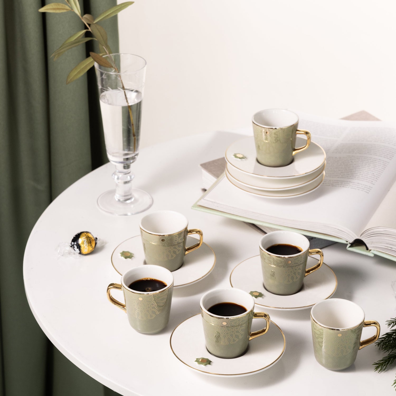 Asala - Esspresso/Turkish Coffee Set (12-Pc) - Olive Green & Gold