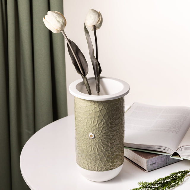 The Asala Large Decorative Vase is a statement of timeless elegance and craftsmanship. Designed to be the centerpiece of any room, this exquisite vase combines luxury with sophistication. Whether filled with fresh flowers or left as a stand-alone piece, its refined silhouette and intricate details bring a touch of grace and beauty to any space. Perfect for elevating your home decor, it transforms any setting into one of distinction and style.