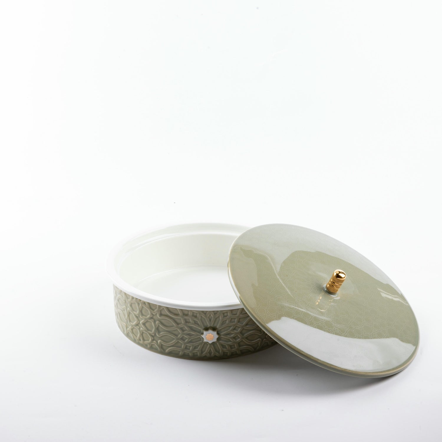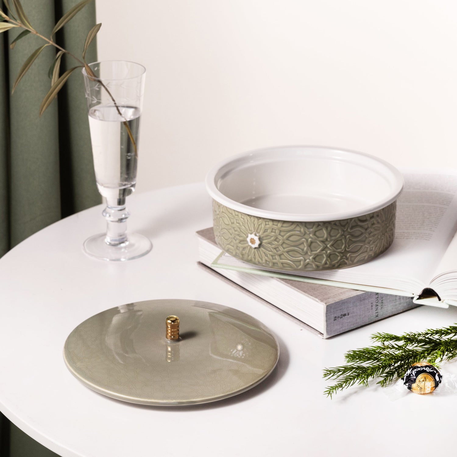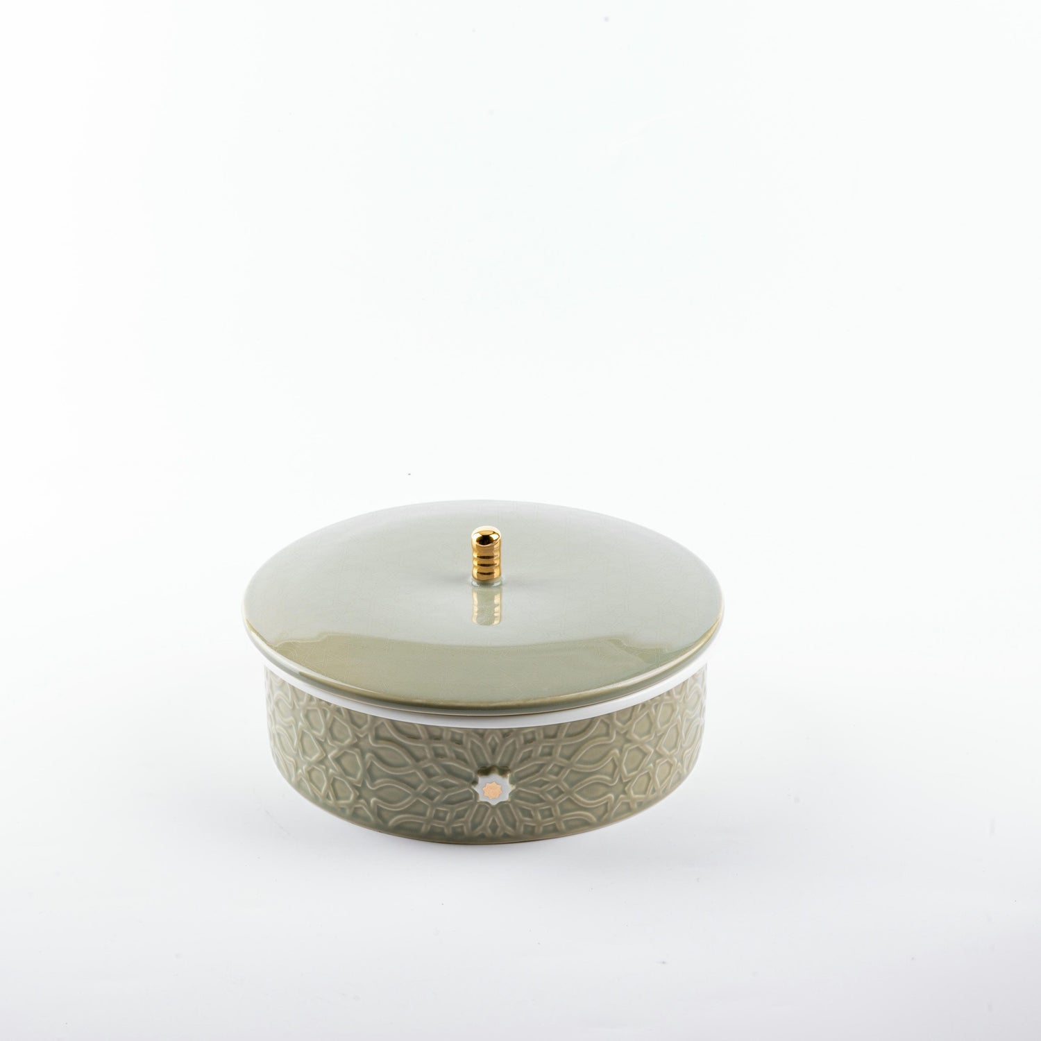 Asala - Medium Decorative Canister - Olive Green & Gold