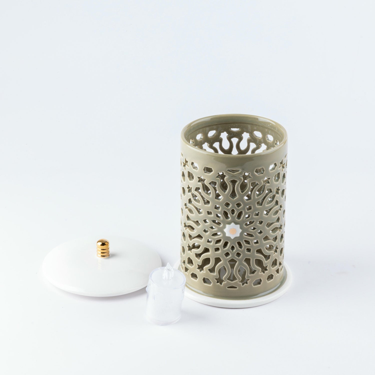 Asala - Medium Lantern Candle Holder - Olive Green & Gold