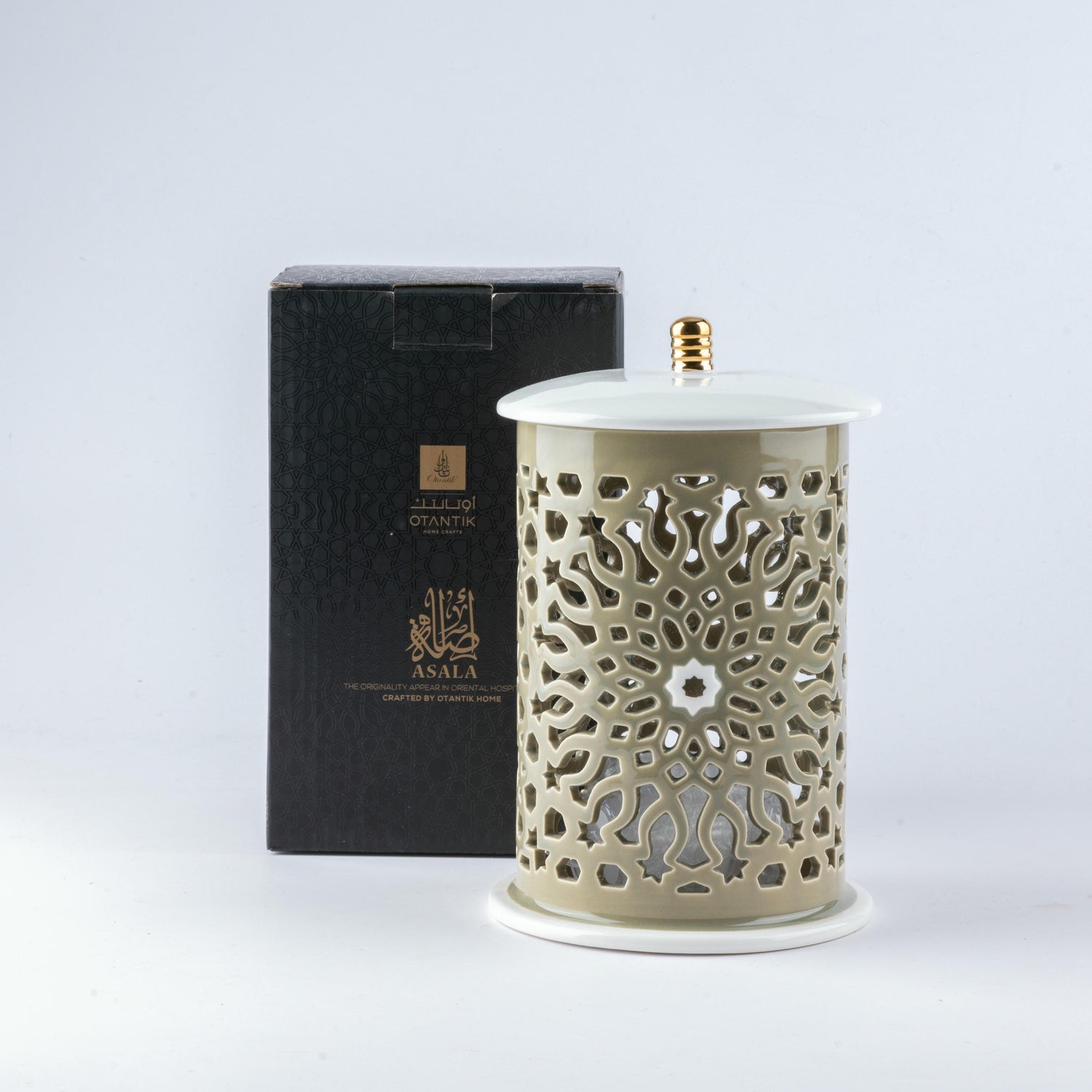The Asala Lantern Candle Holder in medium size offers the ideal blend of elegance and presence. Meticulously designed and adorned with beautiful detailing, it emits a captivating glow that transforms any room or garden into a serene retreat. Perfect for entryways or larger tables, this lantern elevates any setting, creating a warm and inviting atmosphere.