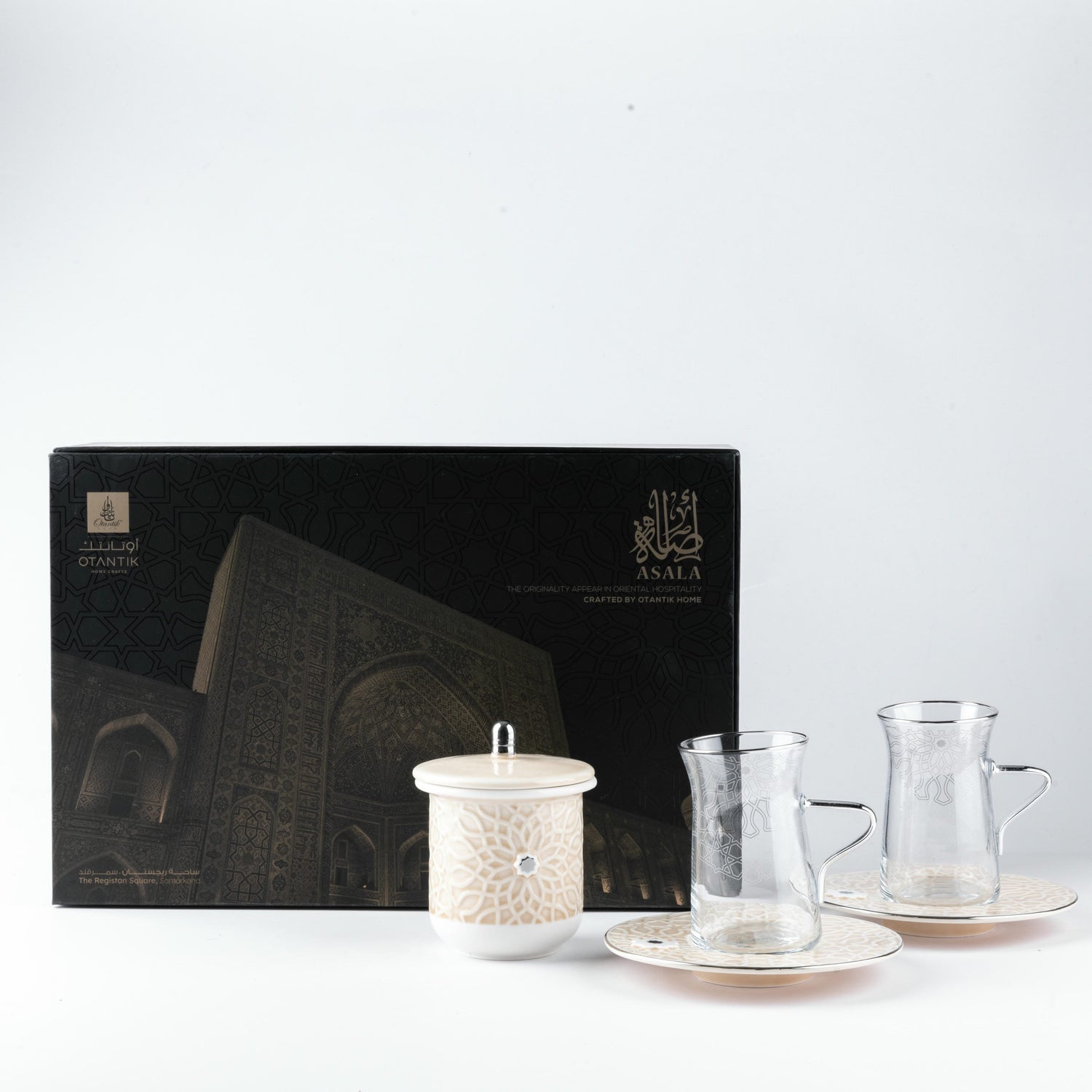 Elevate your tea experience with the Asala 13-Piece Tea Set, a harmonious blend of luxury and craftsmanship. This elegant set includes 6 beautifully designed tea cups, 6 matching saucers, and a delicately crafted sugar bowl. Perfect for intimate gatherings or quiet moments of indulgence, each piece radiates sophistication, turning every tea ritual into an exquisite occasion.