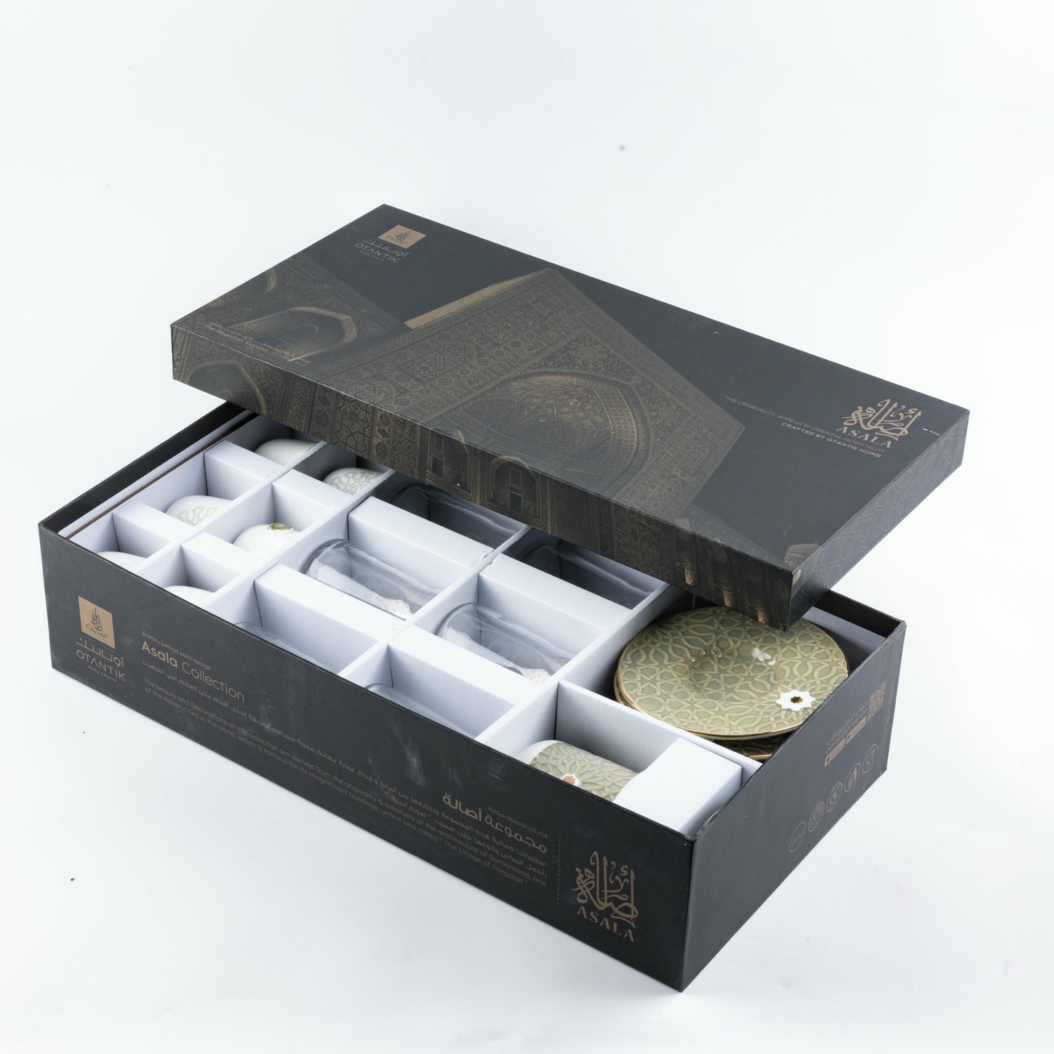 Asala - Tea Set (19-Pc) - Olive Green & Gold