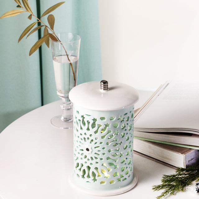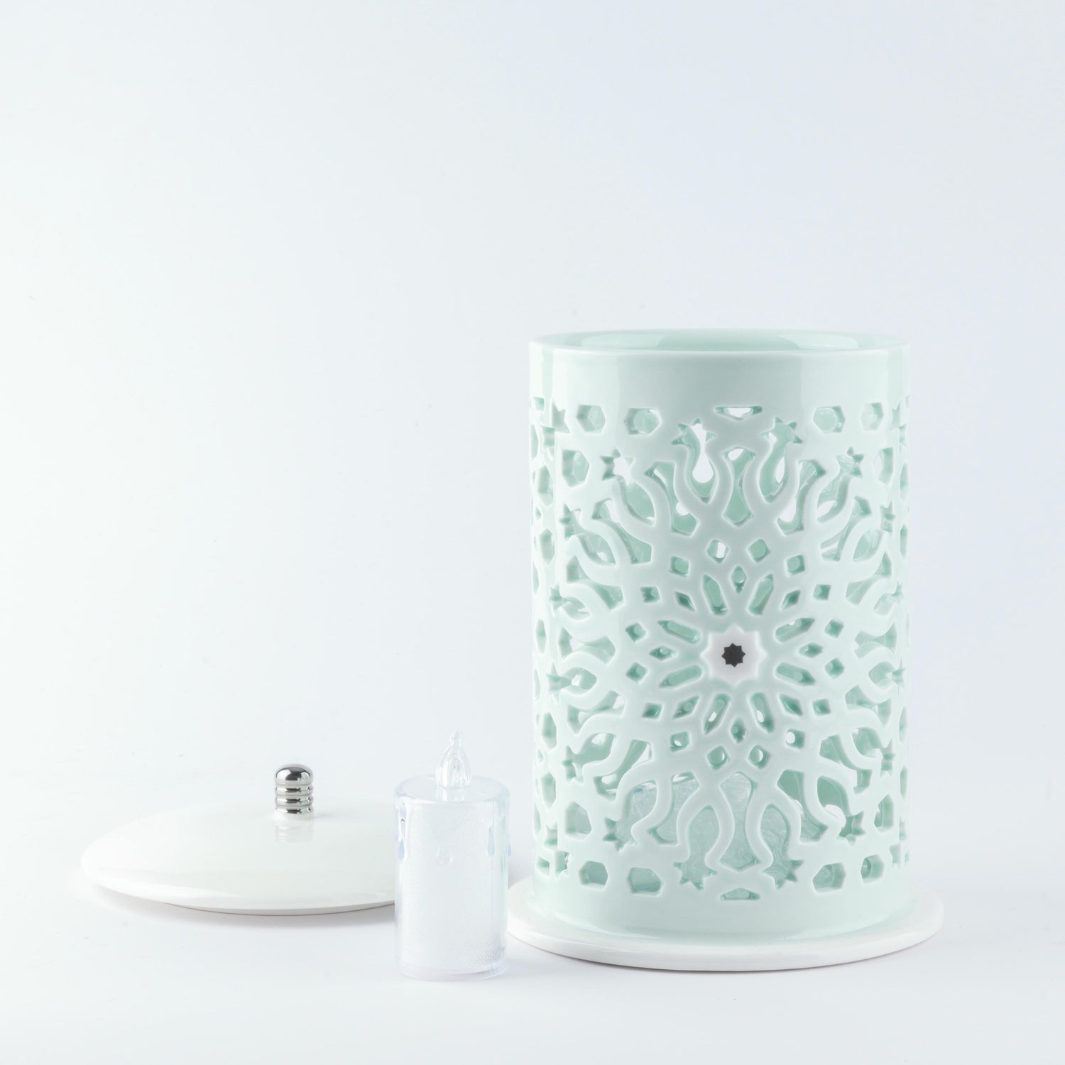 Asala - Large Lantern Candle Holder - Teal & Silver