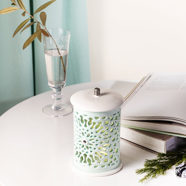 The Asala Lantern Candle Holder in medium size offers the ideal blend of elegance and presence. Meticulously designed and adorned with beautiful detailing, it emits a captivating glow that transforms any room or garden into a serene retreat. Perfect for entryways or larger tables, this lantern elevates any setting, creating a warm and inviting atmosphere.