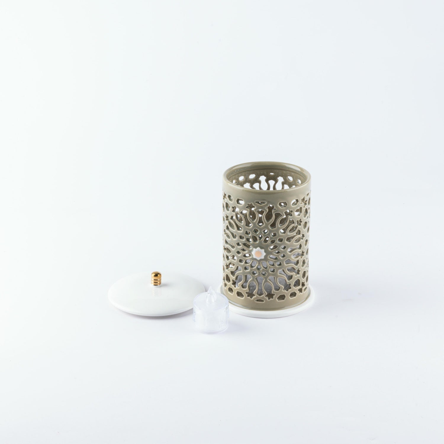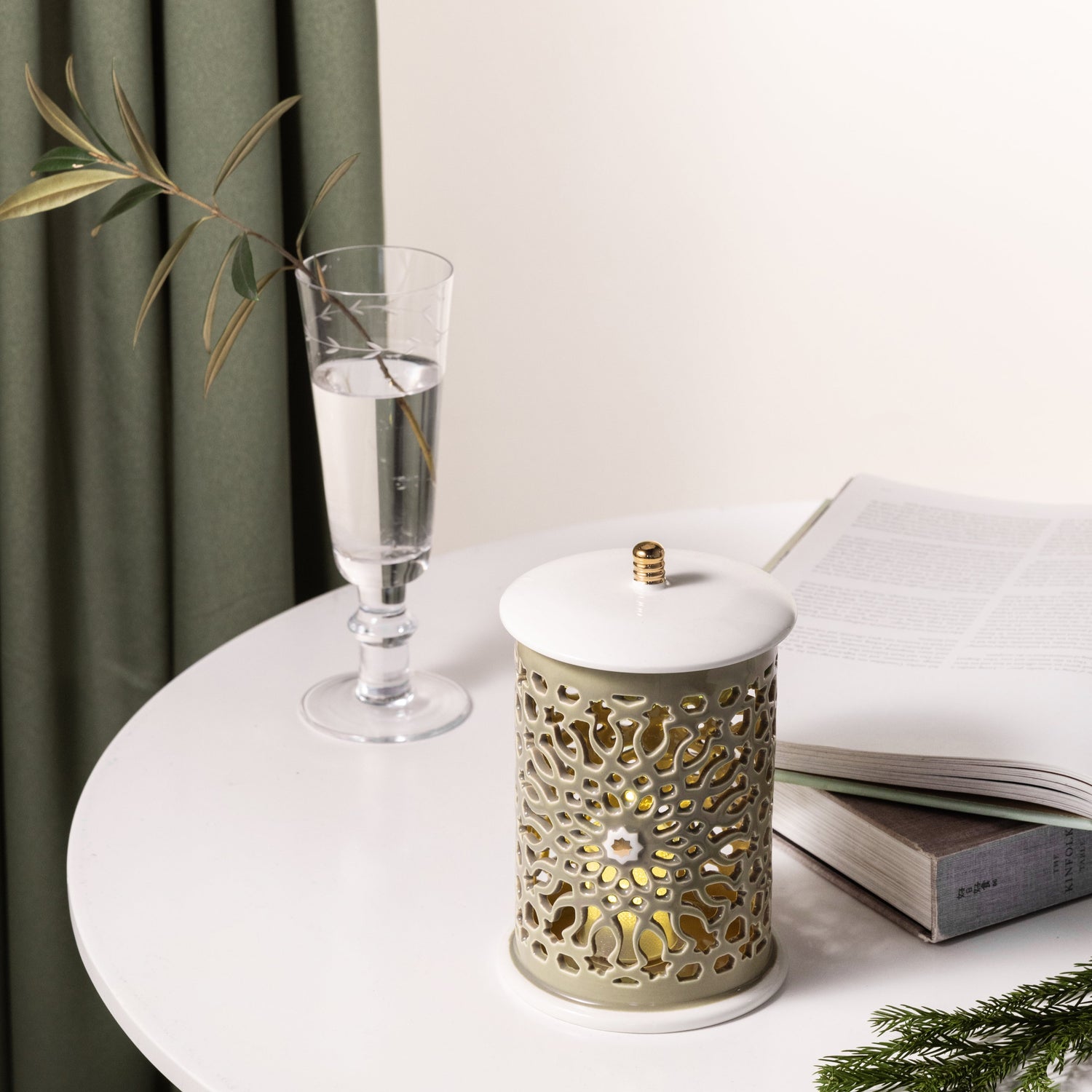 Asala - Small Lantern Candle Holder - Olive Green & Gold