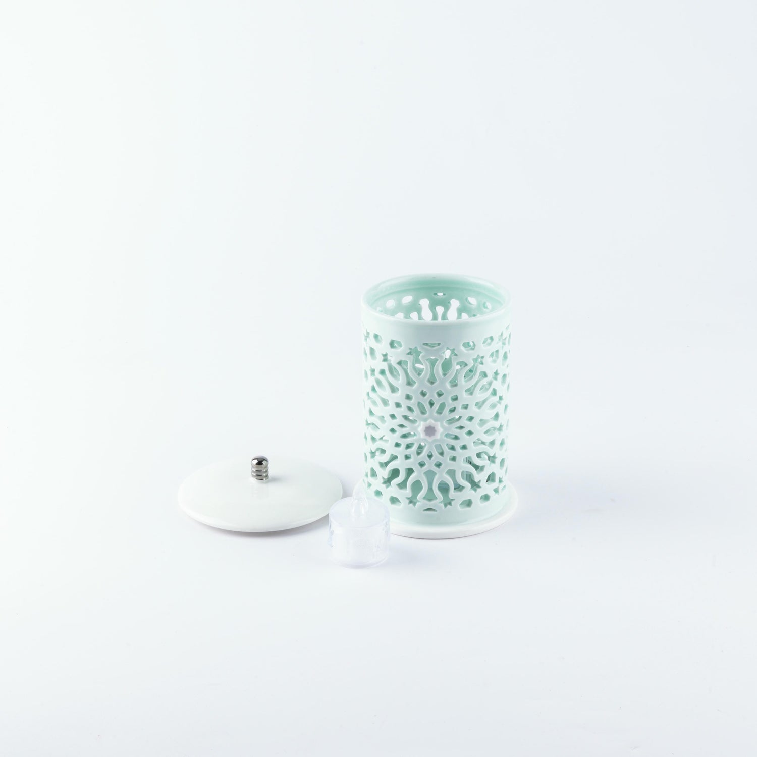 Asala - Small Lantern Candle Holder - Teal & Silver