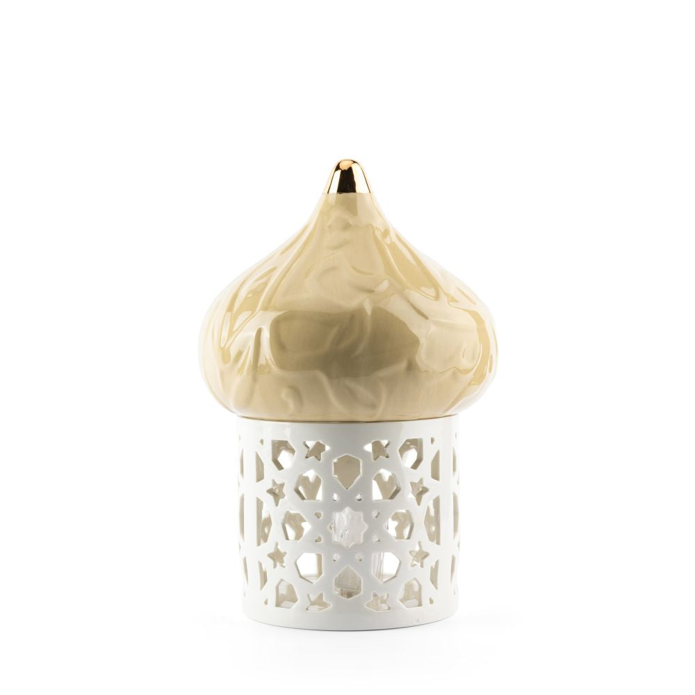 Diwan - Large Lantern Candle Holder - Ivory & Gold