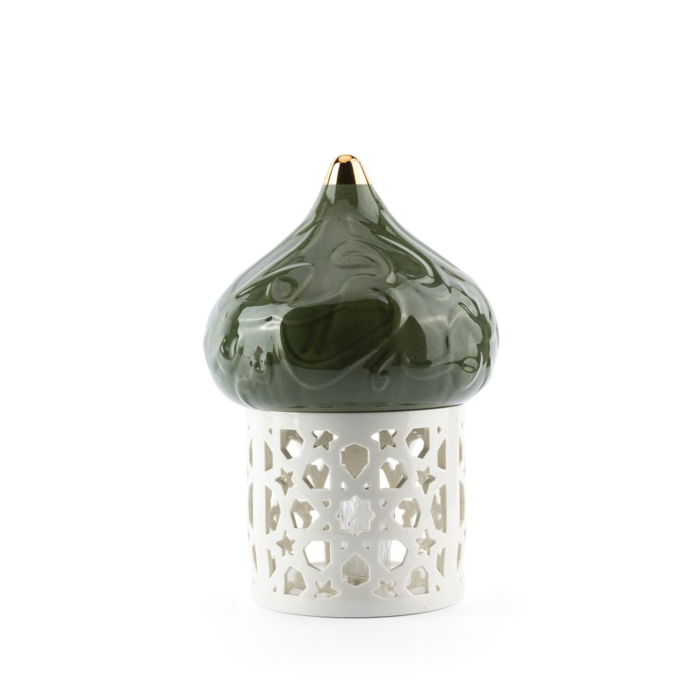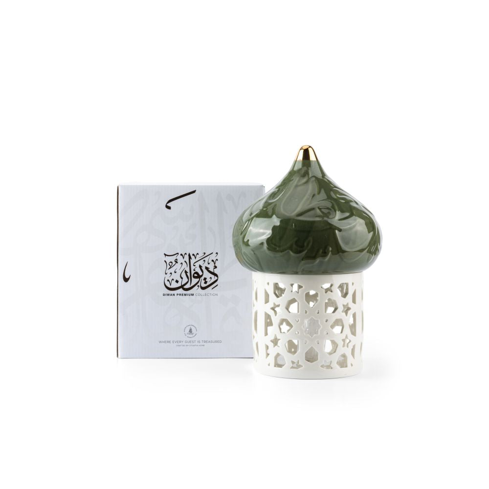 Diwan - Large Lantern Candle Holder - Olive Green & Gold
