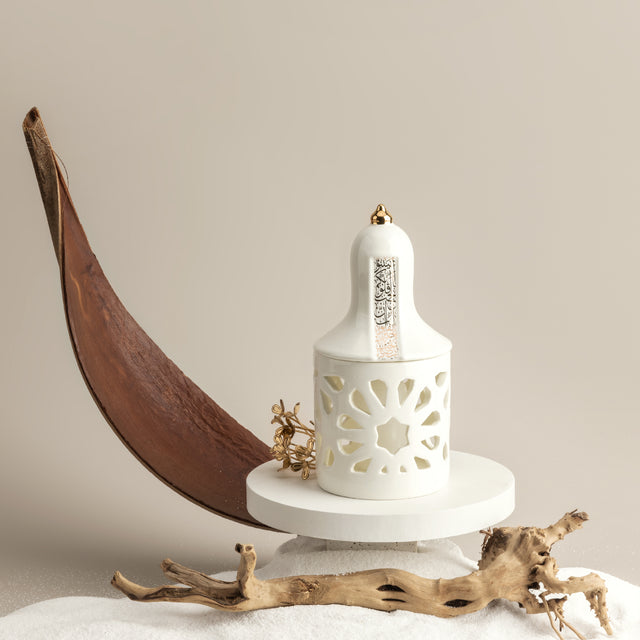 Luxury Noor - Small Lantern Candle Holder - White & Silver