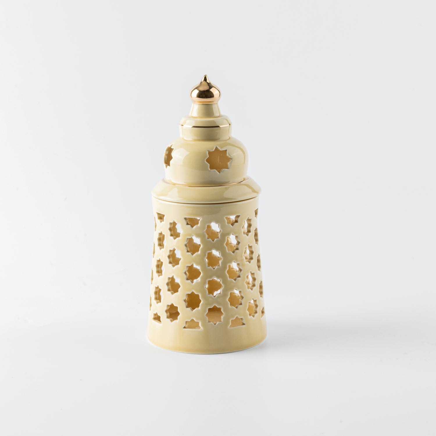 Rosette - Medium Candle Holder - Ivory & Gold is backordered and will ship as soon as it is back in stock.