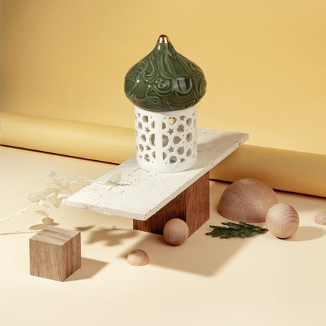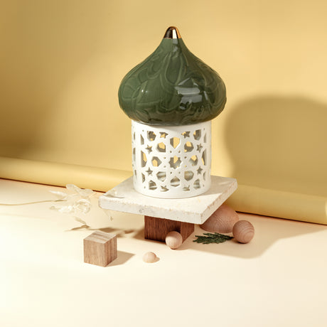 Diwan - Small Lantern Candle Holder - Olive Green & Gold