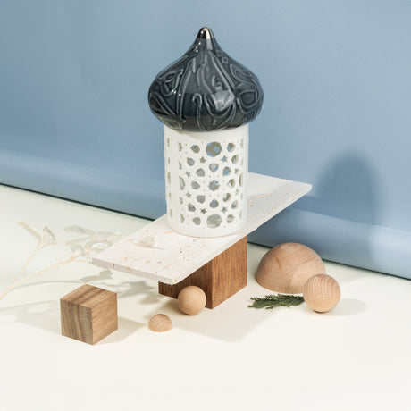 Diwan - Small Lantern Candle Holder - Dark Blue & Silver
