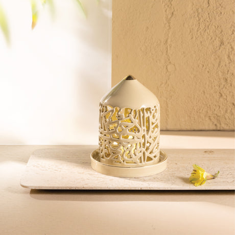 Diwan - Medium Lantern Candle Holder - Ivory & Gold