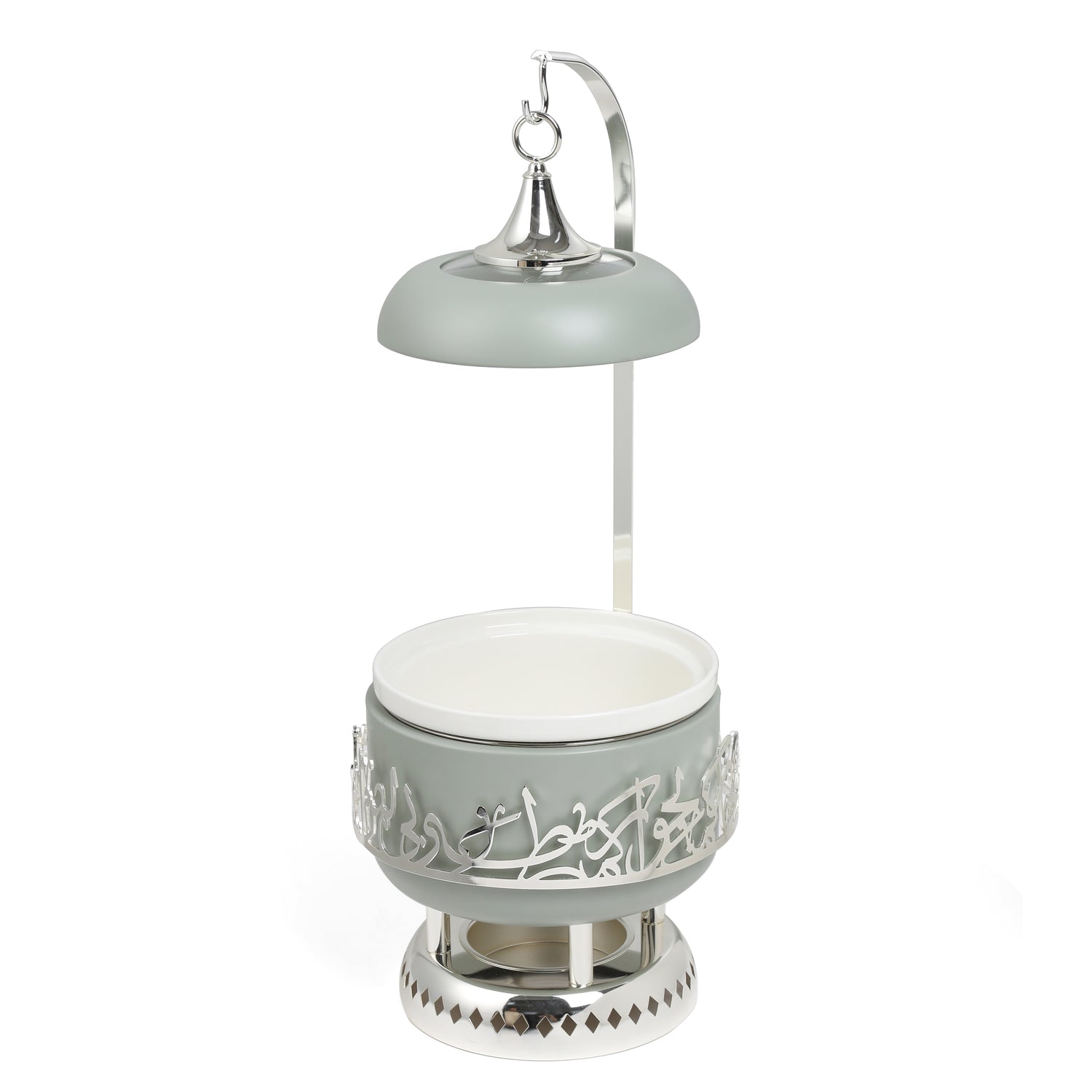 The Jiwar - 2.5 Liters Chafer offers a perfect balance of durability, functionality, and contemporary design. This chafer is designed for the discerning host, with an updated and upgraded design that combines both practicality and elegance. Featuring a stainless steel base, it incorporates a unique water bowl, which ensures even heat distribution and prevents food from drying out. The chafer's porcelain bowl sits securely inside, offering a sophisticated presentation for your dishes. The transparent lid keeps food fresh and warm, while the lid hanger allows for convenient storage when serving. Powered by Sterno for consistent and reliable heat, the Jiwar Chafer is a perfect choice for buffet settings, catering events, and intimate gatherings. This chafer is designed to impress, while providing the functionality you need to keep your food warm and appetizing.