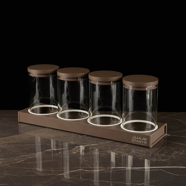 Luxury Majlis - 4 Jar Spice Rack - Brown & Gold