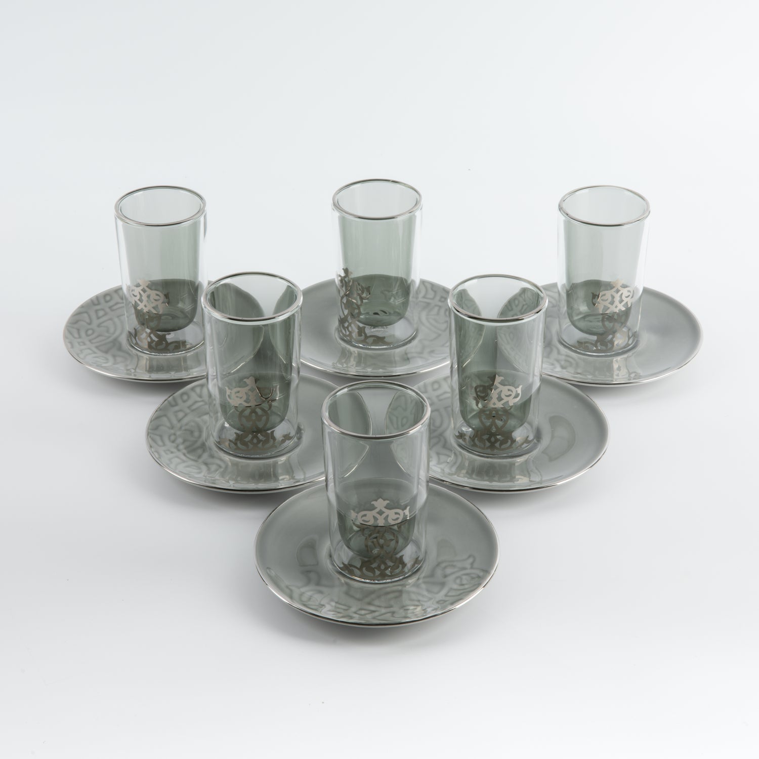Naqsh - Tea Set (12-Pc) - Grey & Silver