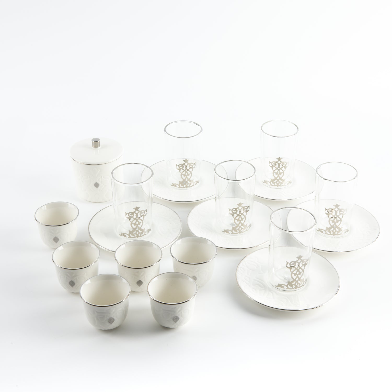 Naqsh - Tea Set (19-Pc) - White & Silver