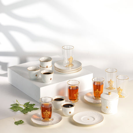 Naqsh - Tea Set (19-Pc) - Ivory & Gold