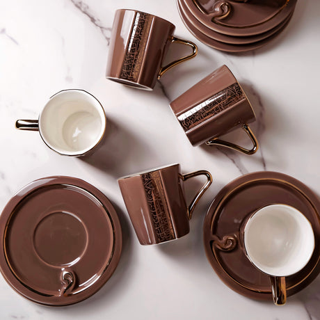 Luxury Noor - Tea Set (12-Pc) - Brown & Gold