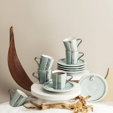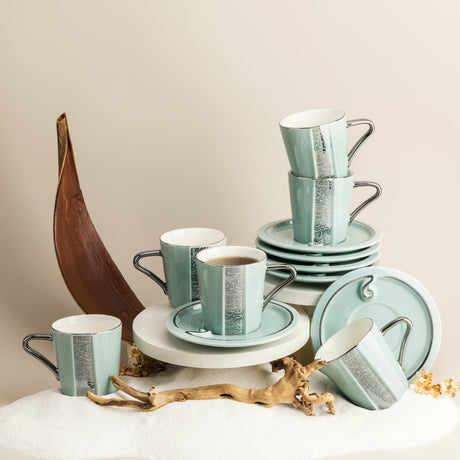 Luxury Noor - Cappuccino Coffee Set (12-Pc) - Blue & Silver