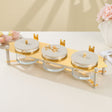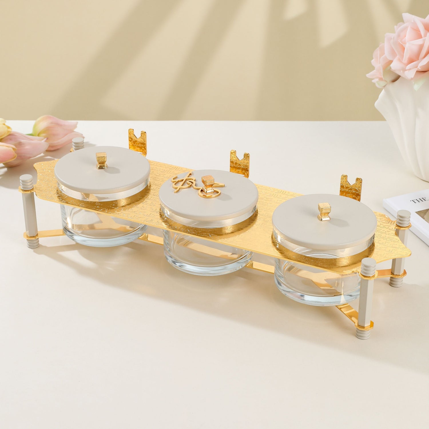 Jiwar - Triple Elegant Nut Serving Set with Engraved Base - Beige & Gold
