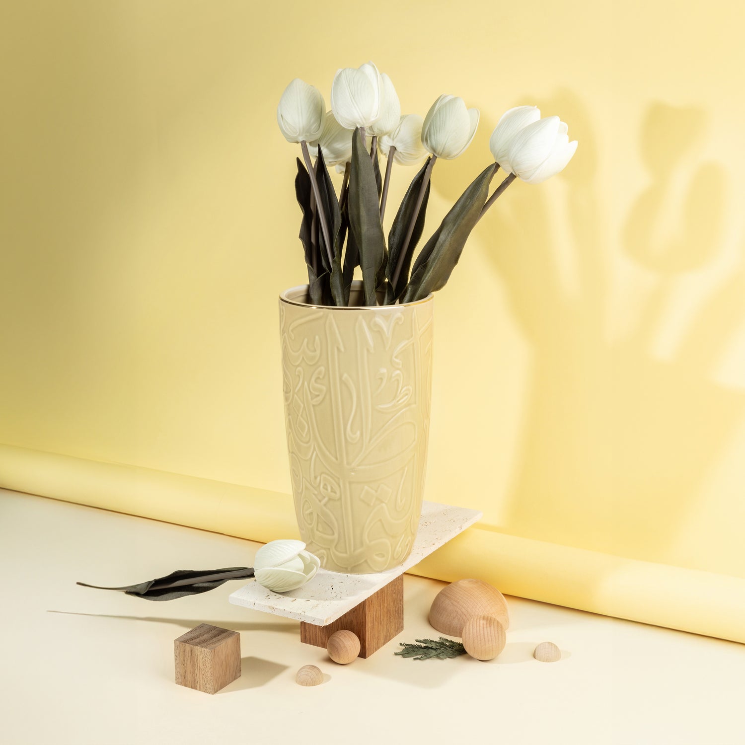 Luxury Diwan - Large Decorative Vase - Beige & Gold