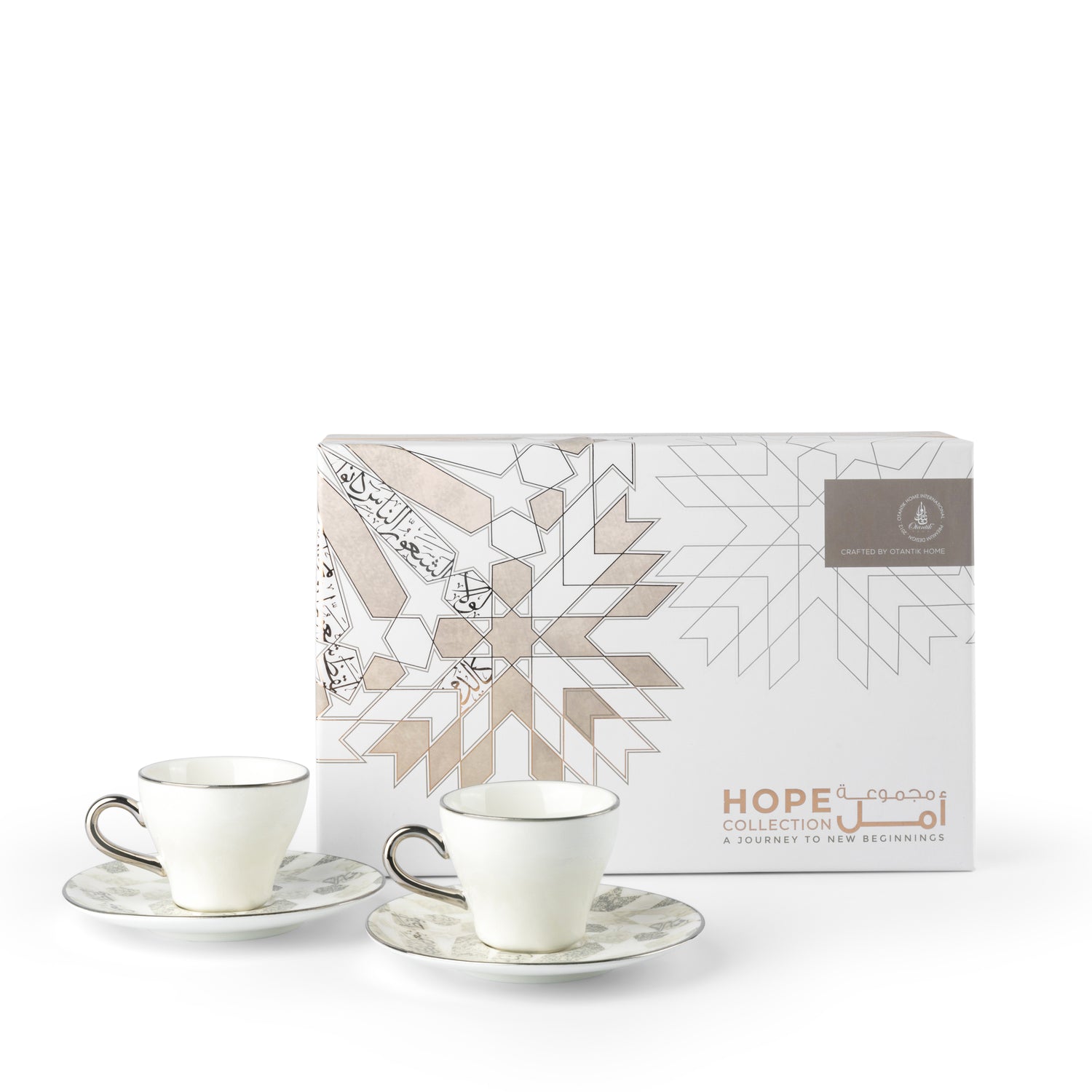 Amal - Tazas de café expreso/turco, (4 piezas) - Gris y plateado