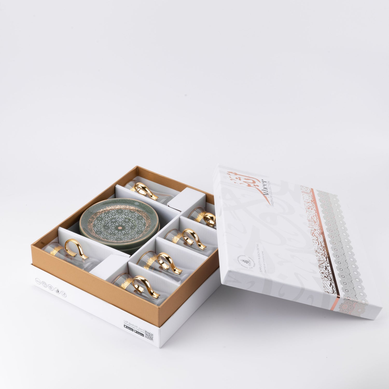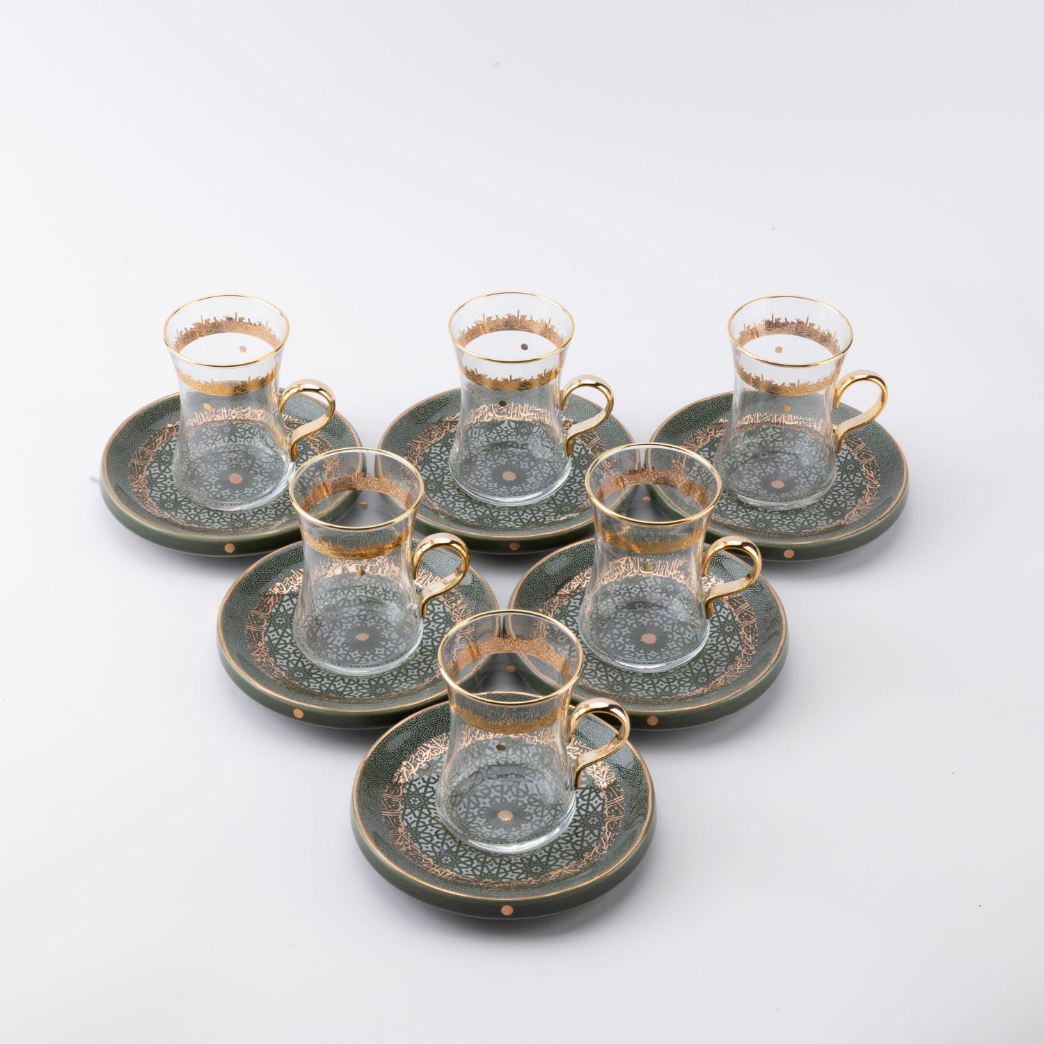 Atheer - Tea Set (12-Pc) - Olive Green & Gold
