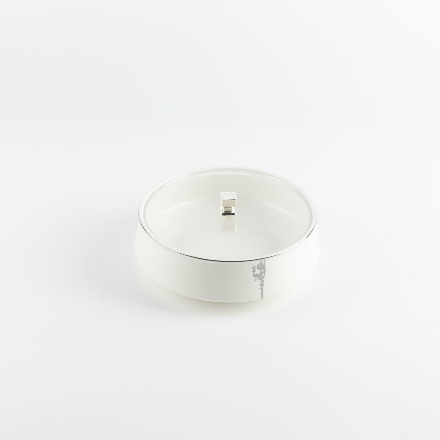 Liqa'a - Medium Decorative Canister - Pearl White & Silver