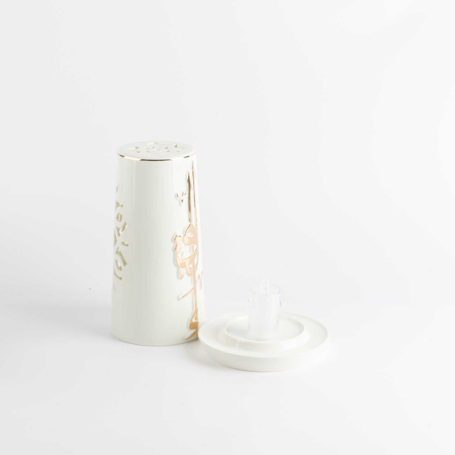 Liqa'a - Large Lantern Candle Holder - Pearl White & Gold