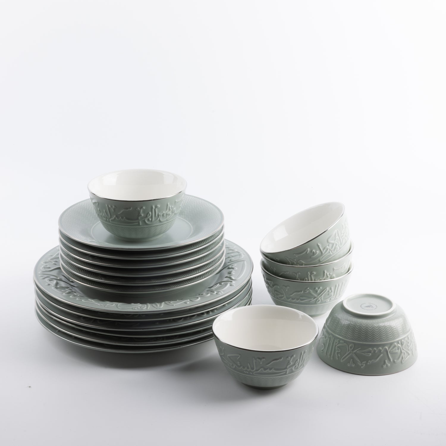Jiwar - Dinner Set (18-Pc) - Mint Green & Silver