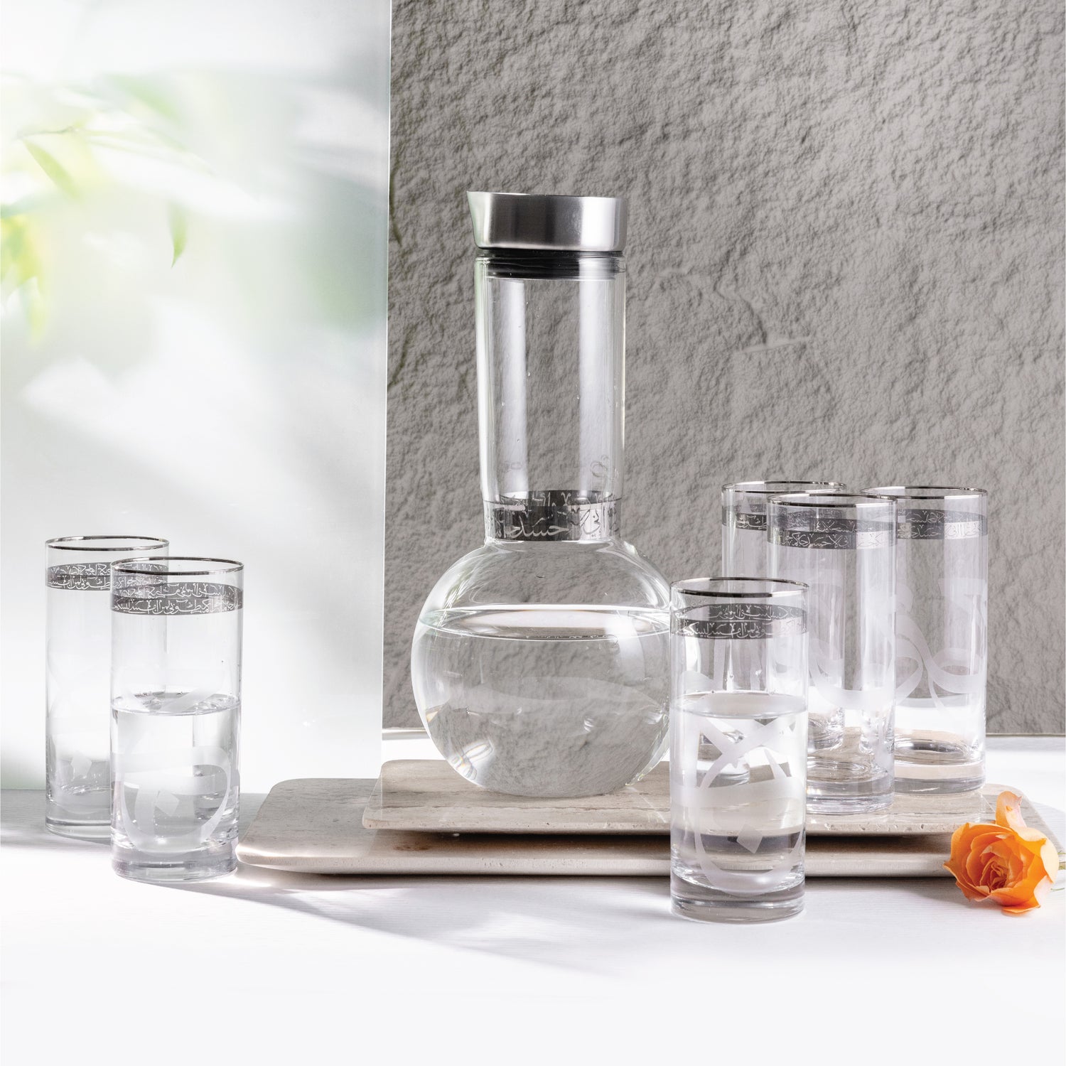 Serve in style with the Jiwar Jug with 6 Tall Cups, a stunning set designed for elegance and functionality. Whether serving refreshing drinks, infused water, or traditional beverages, this set offers a timeless look that complements any table setting.