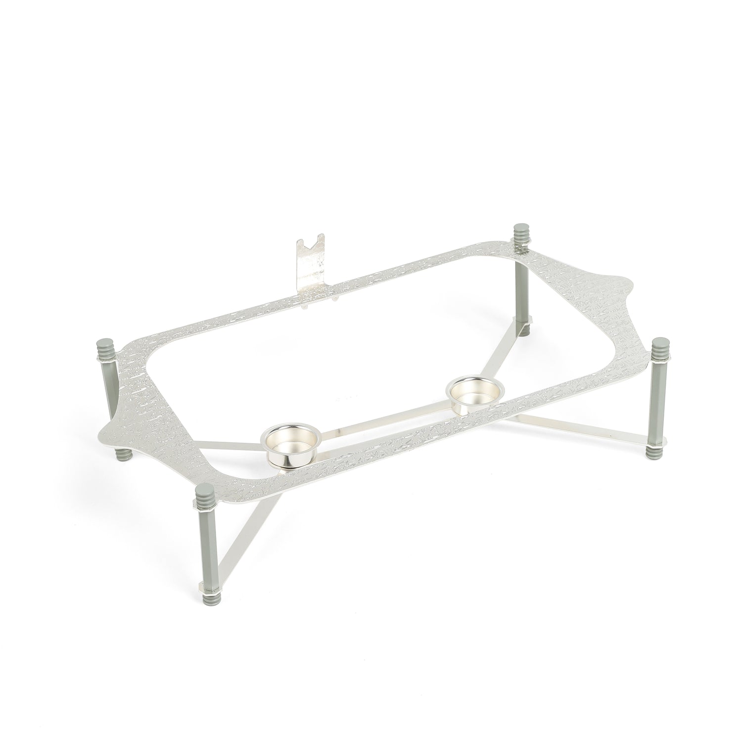 The JIWAR Large Twin Candle Pyrex Chafer is the ultimate choice for those looking to serve a large array of dishes with style and sophistication. With its generous size, this chafer can hold larger portions, making it ideal for buffets, catering events, or family-style meals. The rectangular Pyrex bowl rests securely on a sturdy stainless steel base, ensuring both durability and a polished look. Equipped with dual candle holders, it provides consistent and efficient heat to keep your food warm for extended periods. The decorative stainless steel lid, featuring intricate design details from the collection, adds an elegant touch while ensuring that your food stays covered and fresh. When serving, the lid can be conveniently hung from the attached holder on the base for easy access and a streamlined presentation.