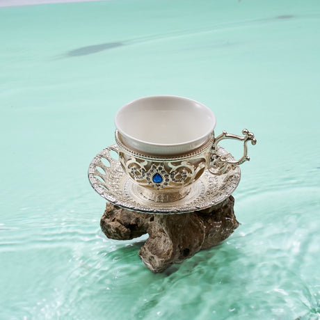 Amal - Tazas de capuchino, (12 piezas) - Azul y dorado