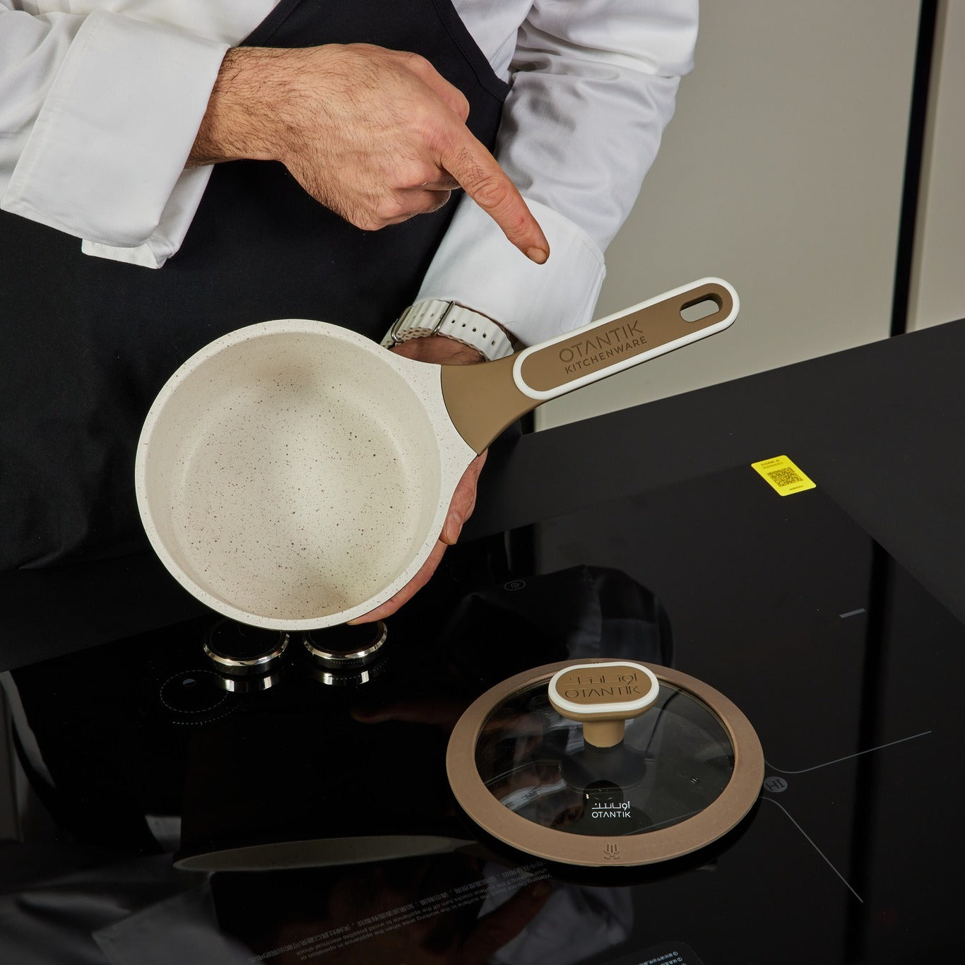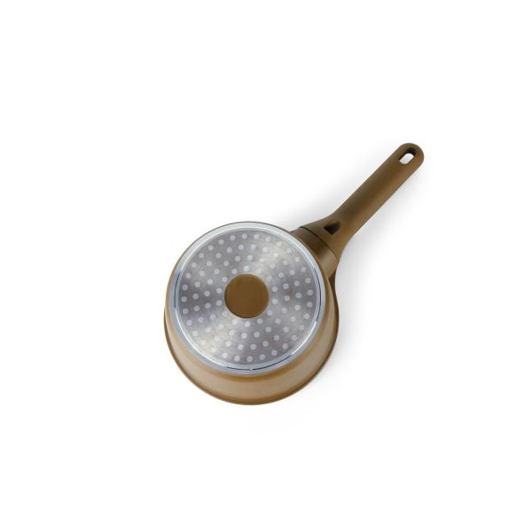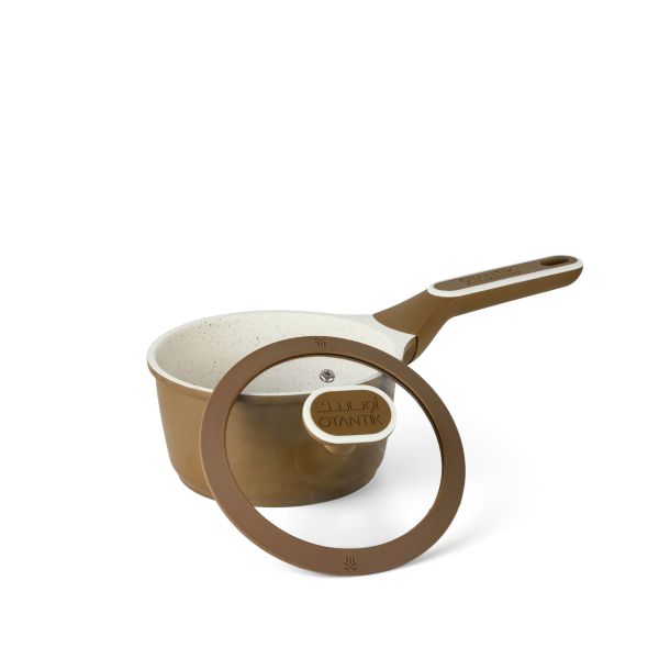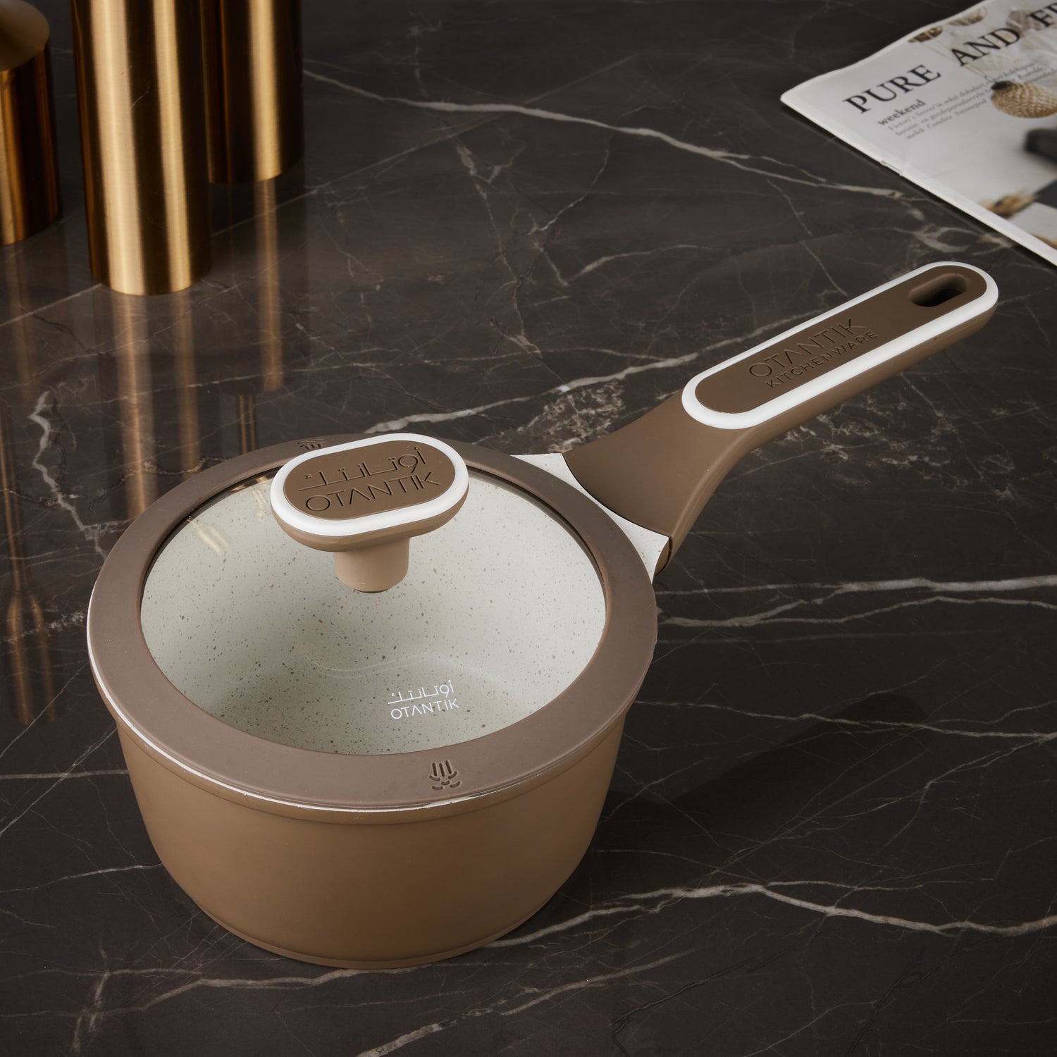 Otantik Sartén antiadherente de 1 cuarto de galón con tapa de aluminio fundido, revestimiento de mármol cerámico, asas frías, compatible con todas las estufas (marrón)