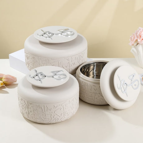 Liqa'a - Food Thermos/ Warm Serv (Set of 3) - Pearl White & Silver