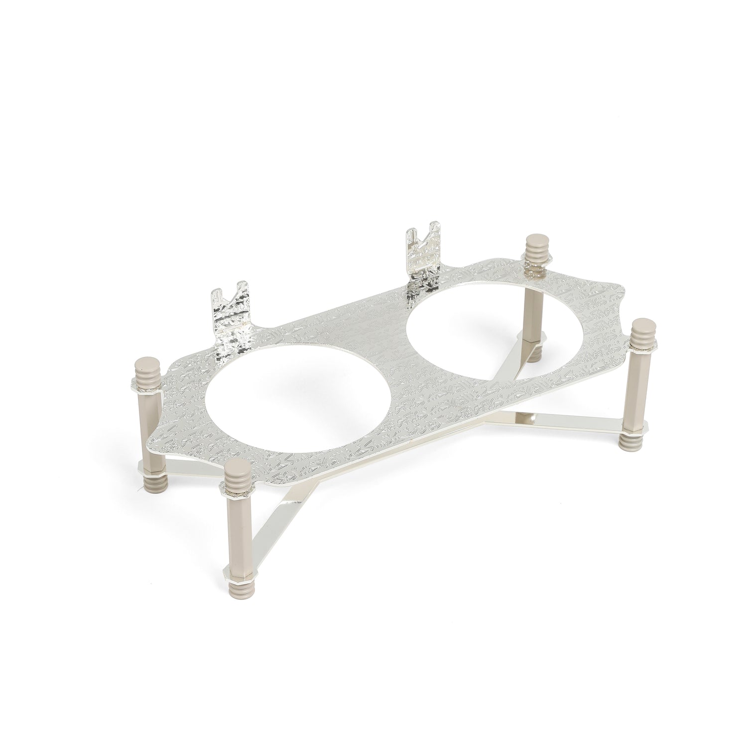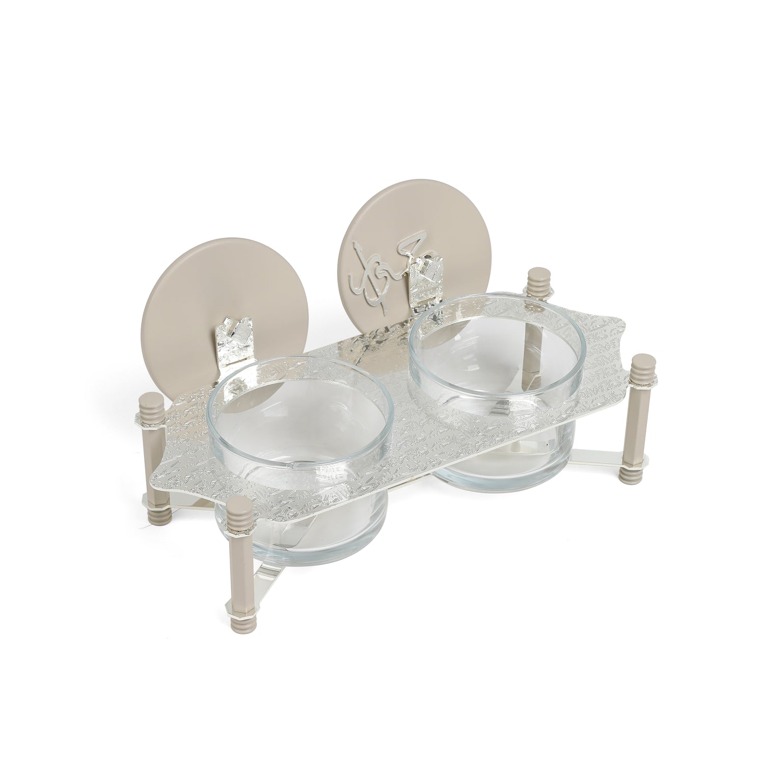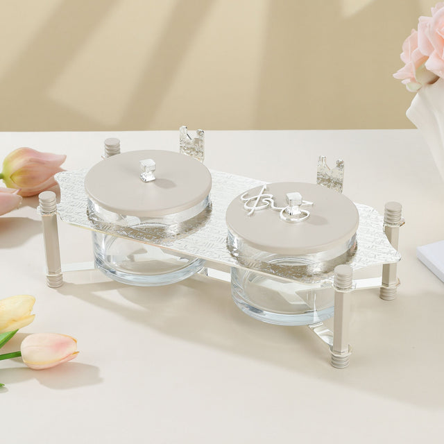 Jiwar - Dual Elegant Nut Serving Set with Engraved Base - Beige & Silver