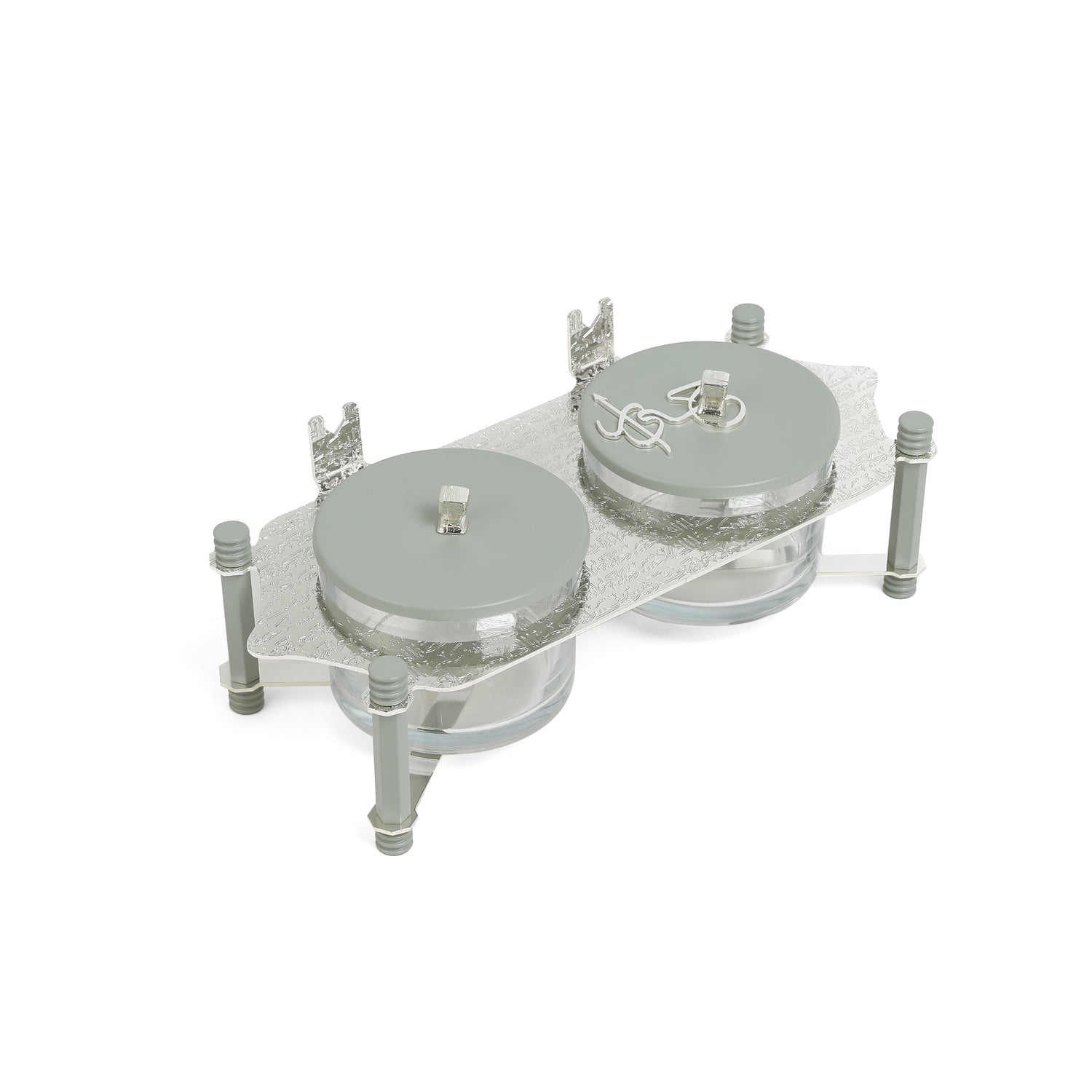 Jiwar - Dual Elegant Nut Serving Set with Engraved Base - Mint Green & Silver
