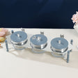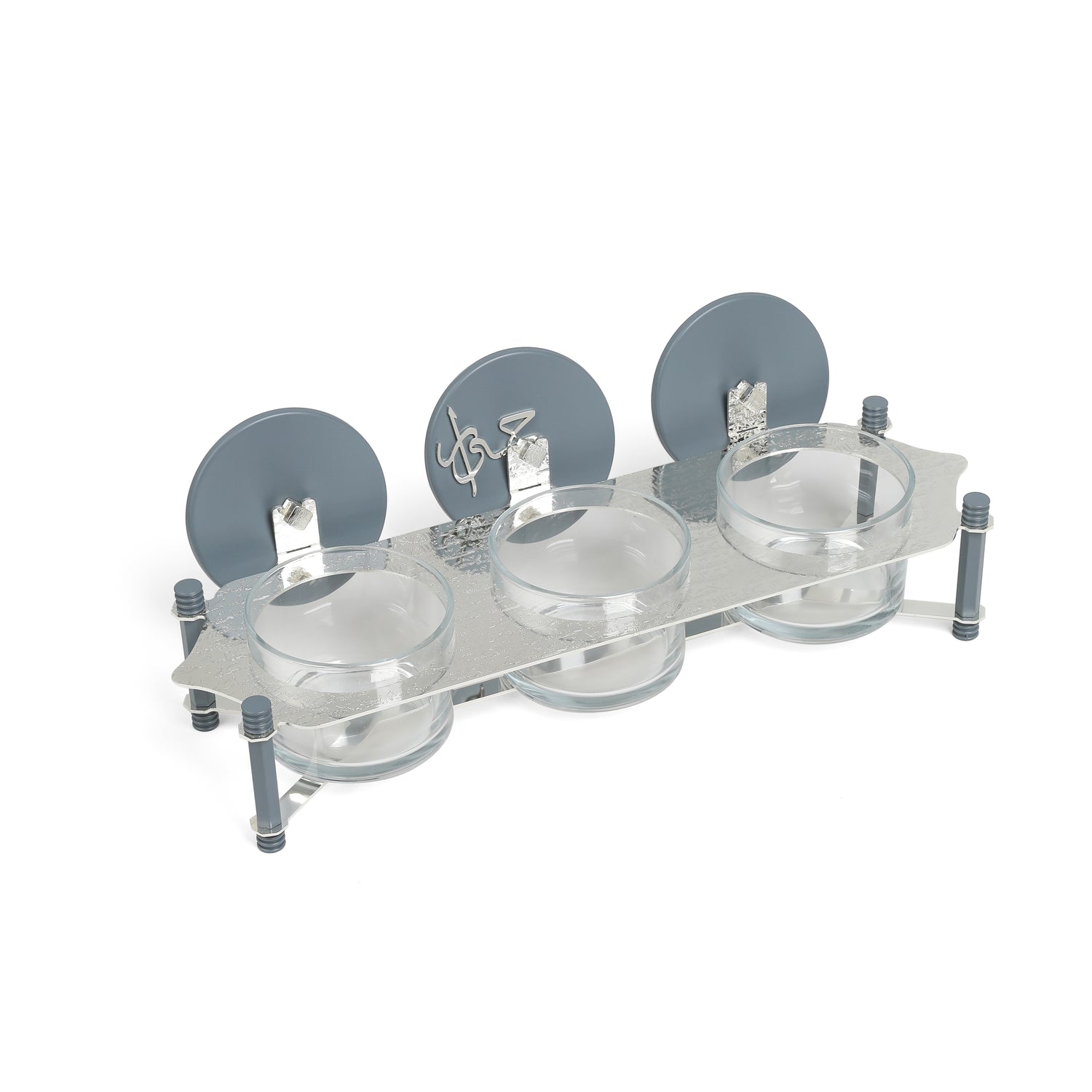 Jiwar - Triple Elegant Nut Serving Set with Engraved Base - Haze BLue & Siver