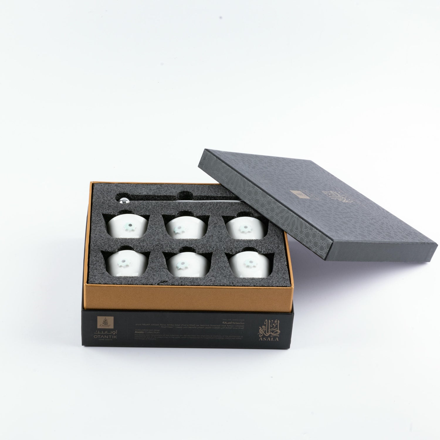 Discover the Asala Coffee Cups with Holder—where heritage meets elegance in every detail. Crafted with precision, these cups are designed to enrich your coffee moments, offering both beauty and practicality. Whether you're sharing a traditional brew with friends or enjoying a quiet escape, this set brings a refined charm to your coffee rituals, making each sip a celebration of luxury.