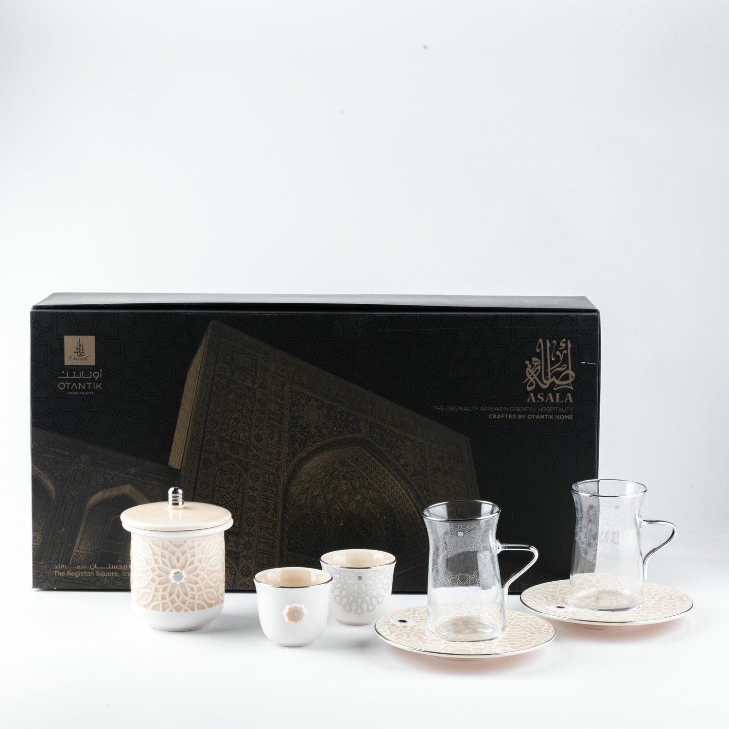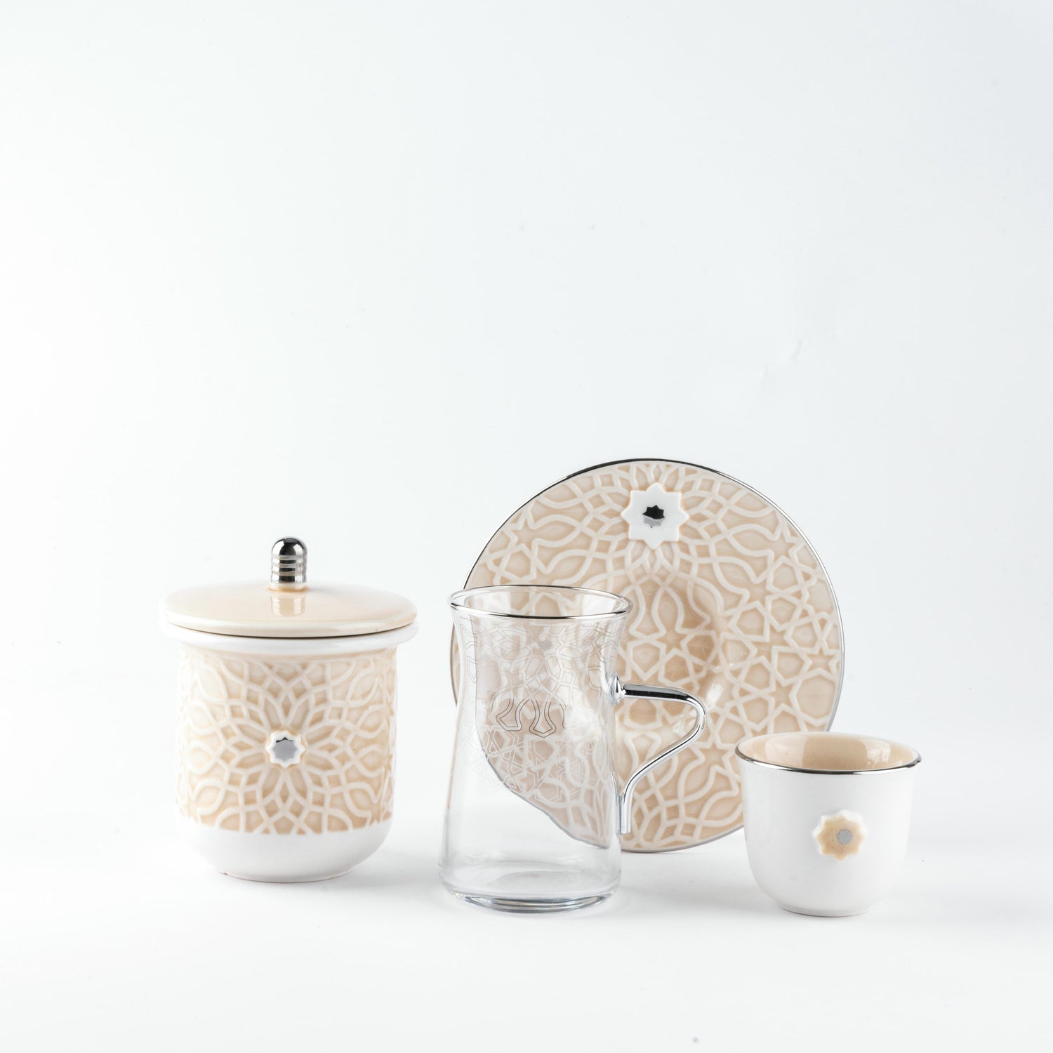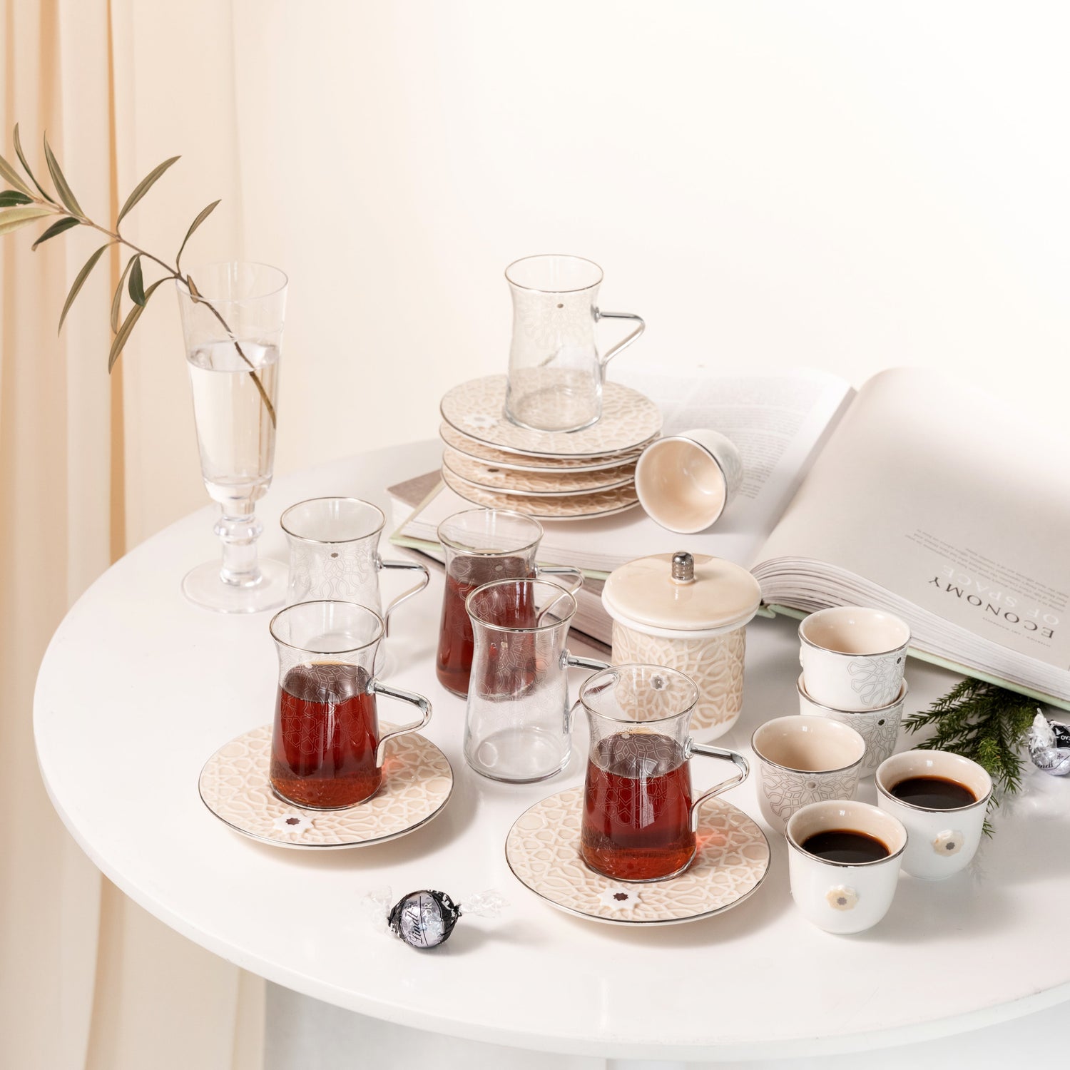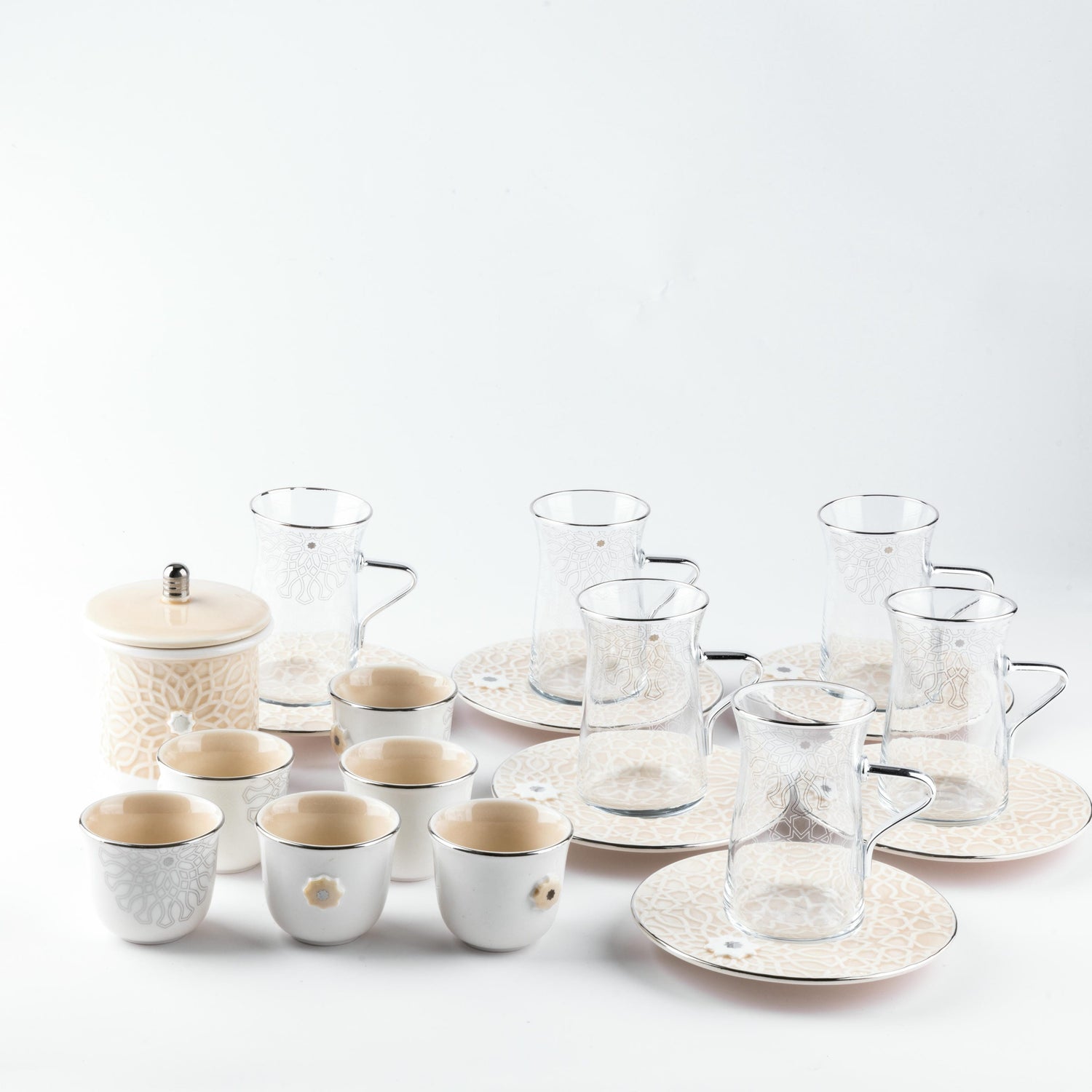 Asala - Tea Set (19-Pc) - Beige & Silver