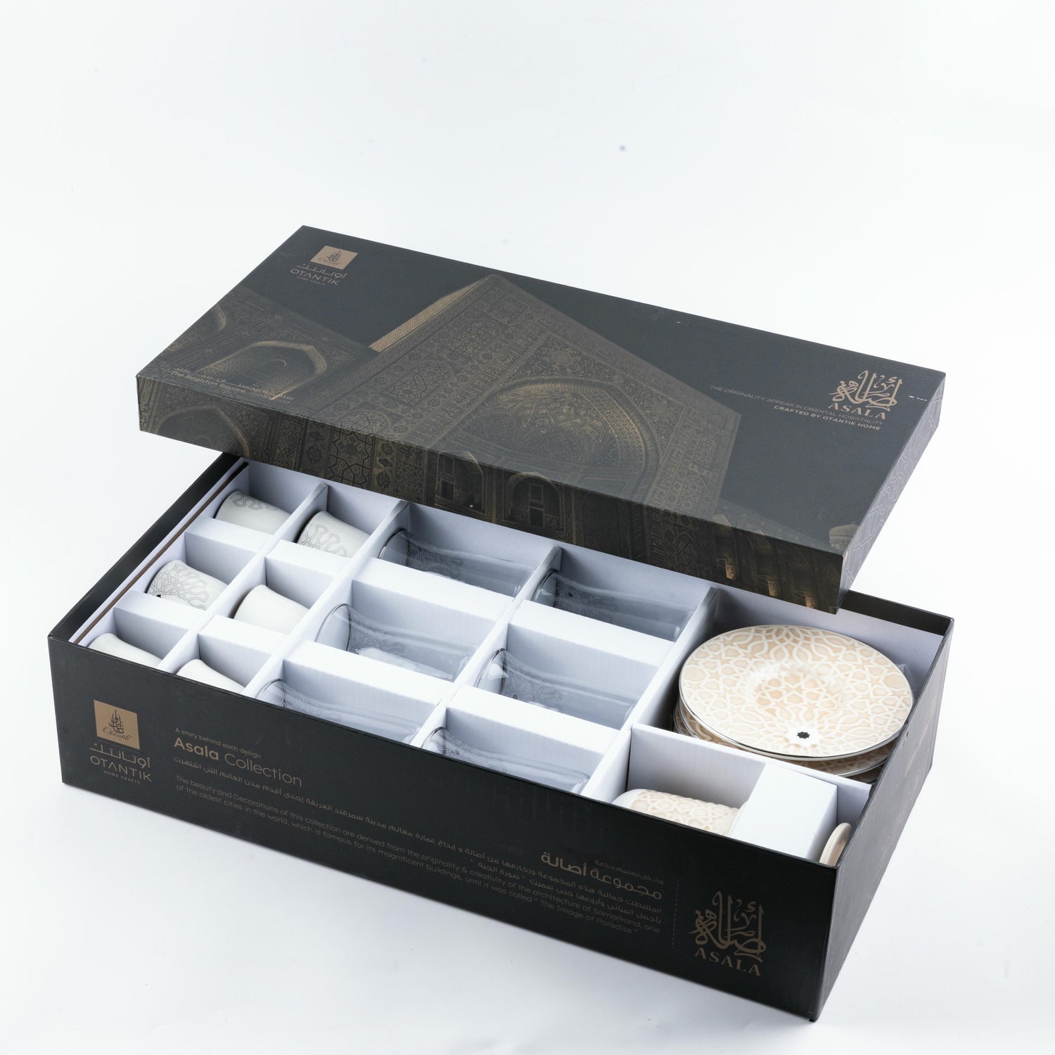 • Set includes – 6 tea cups, 6 saucers, 6 Arabic coffee cups & a sugar bowl