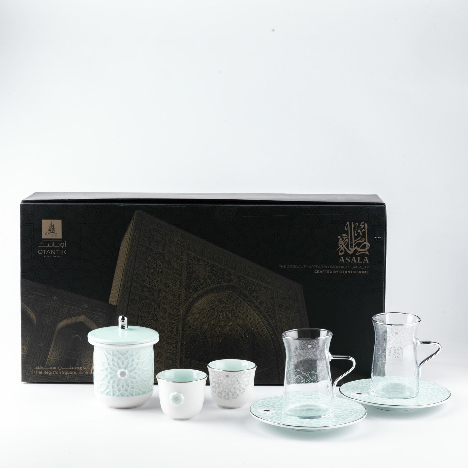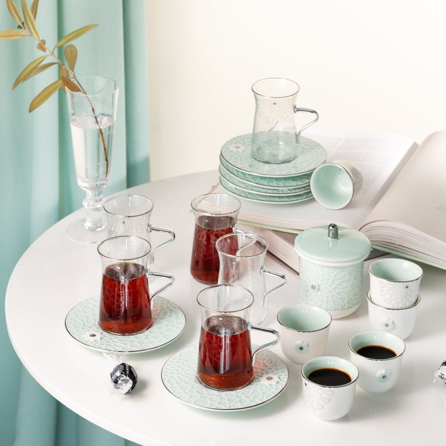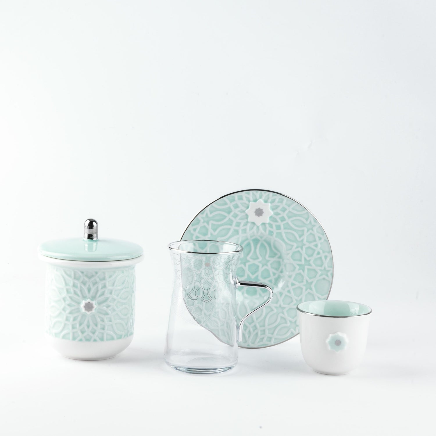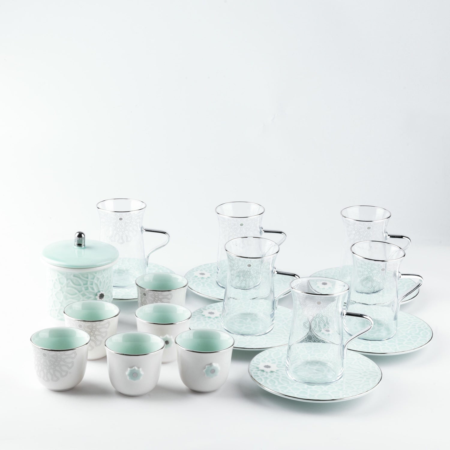 Asala - Tea Set (19-Pc) - Teal & Silver