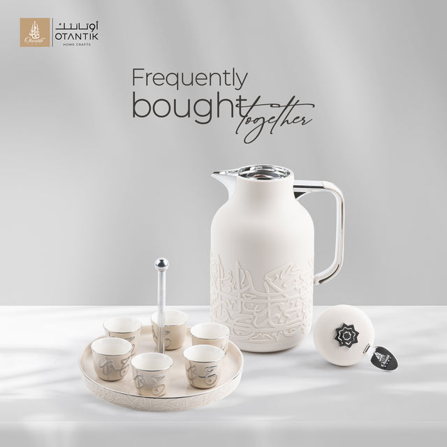 1x Jiwar - Arabic Coffee Cups With Holder - Beige & Silver – Otantik Home